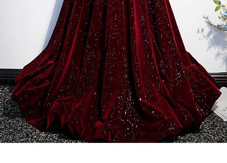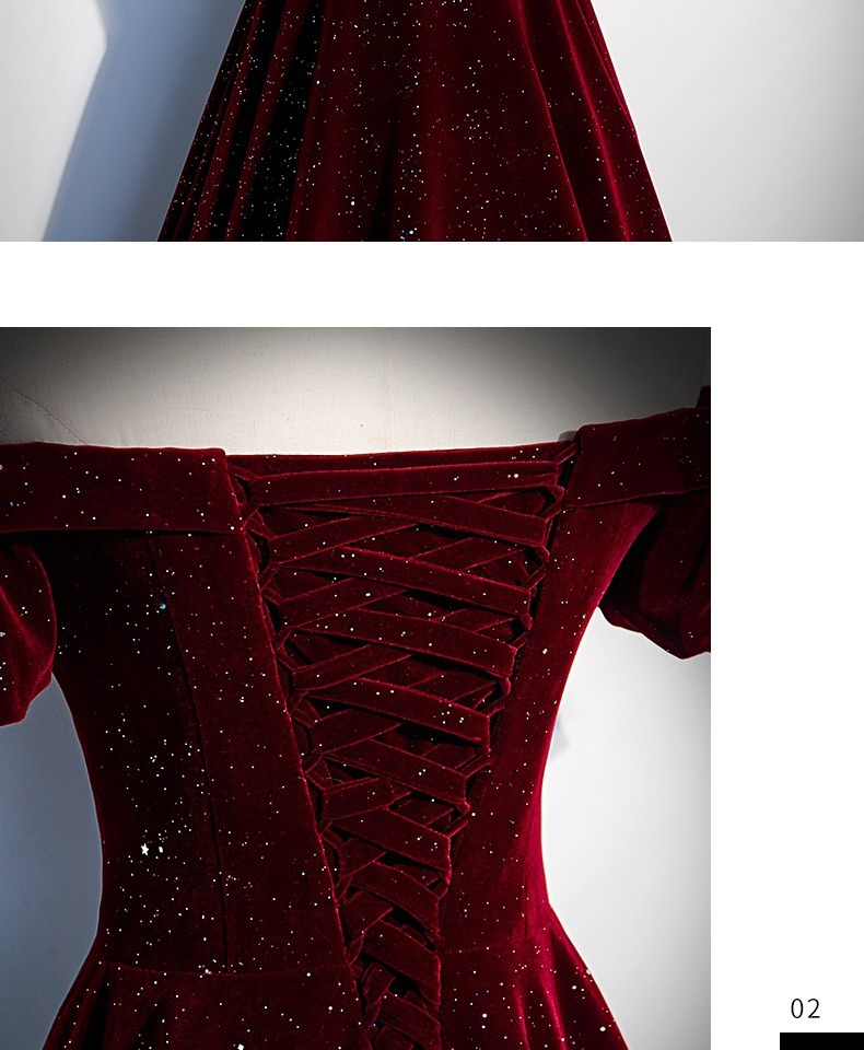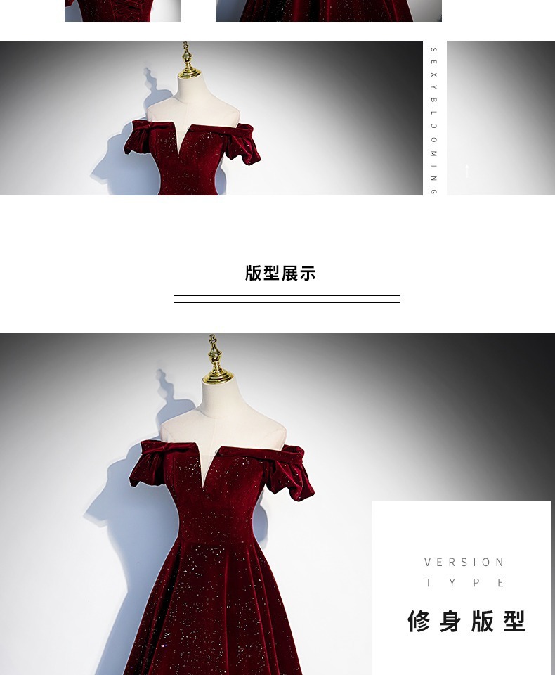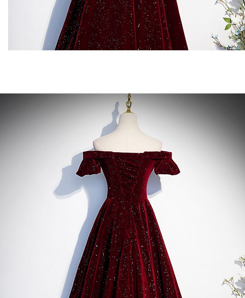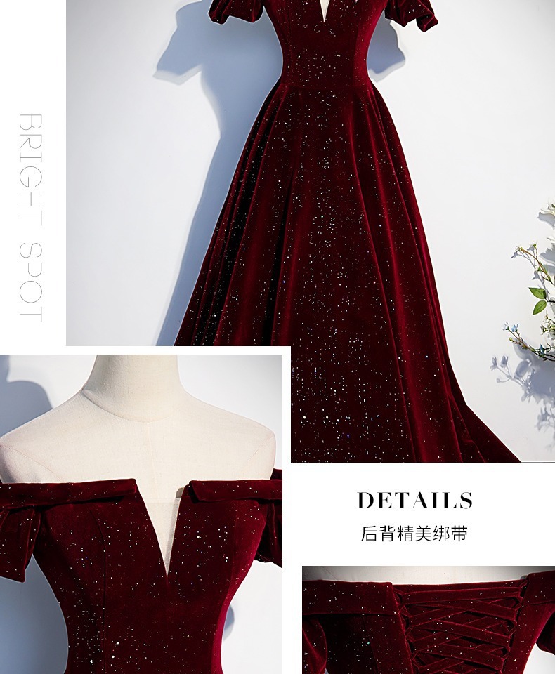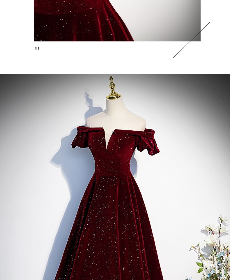 Off-плечи винно-красный бархат вечернее платье женское исполнение фортепиано хозяин высокого класса тост платье невесты Высокое чувство