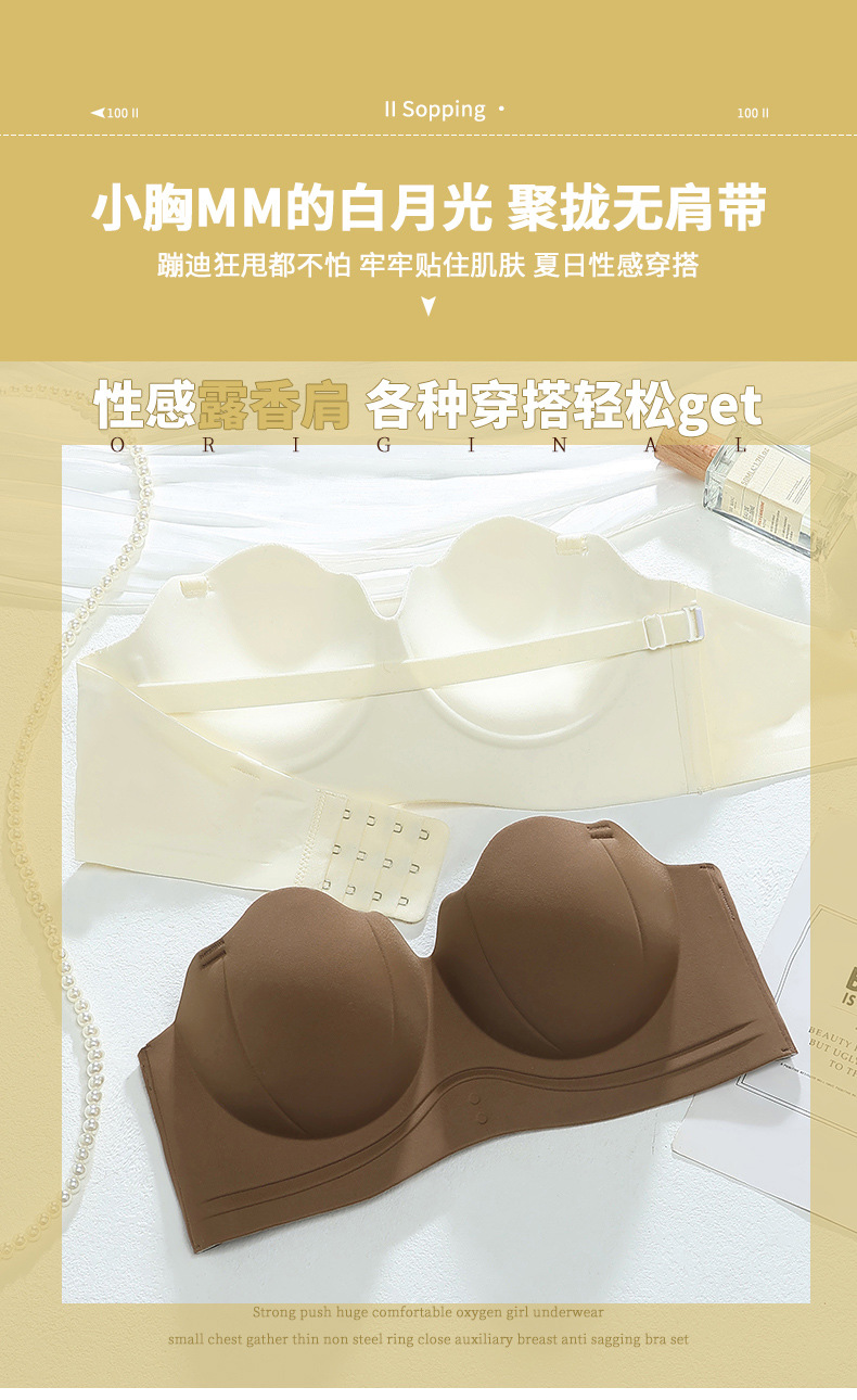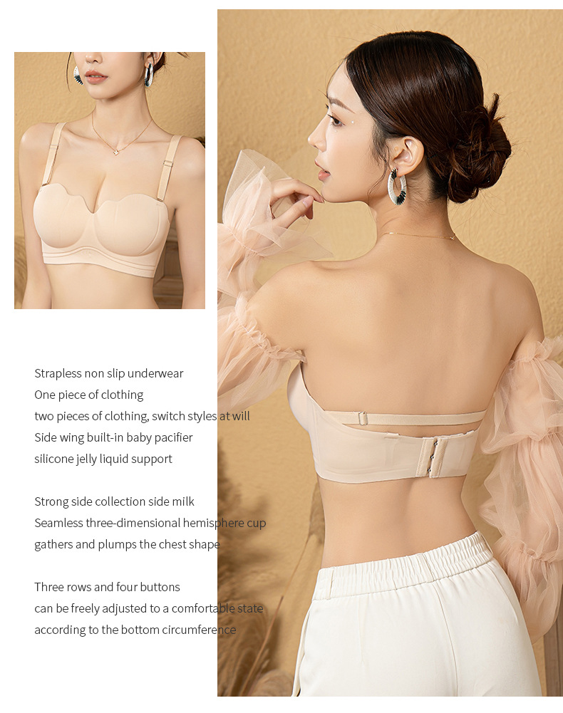 Нижнее белье без бретелек, Женский нескользящий бюстгальтер с эффектом пуш-ап, маленькая нагрудная витрина, с запахом и трубкой, специальный Невидимый красивый бюстгальтер сзади для свадебного платья
