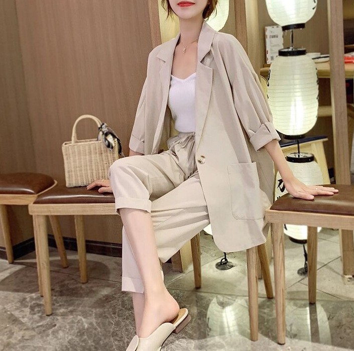 Модный повседневный костюм для полных девочек, пальто больших размеров, женские леггинсы OL, тонкий костюм из двух частей, лето 1905 года