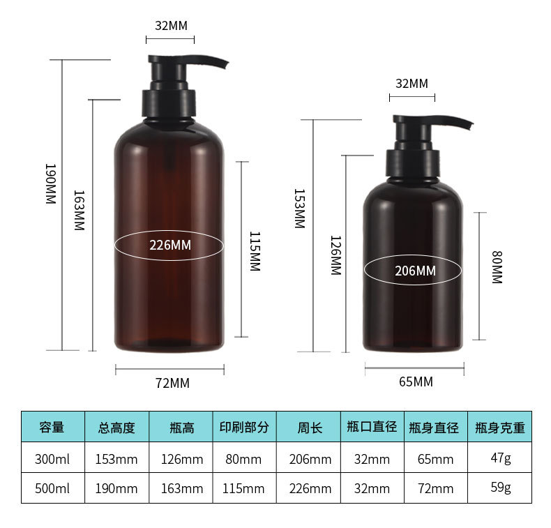 现货300ml500ml乳液瓶洗发水瓶沐浴露瓶洗护瓶厚壁圆肩分装瓶塑料