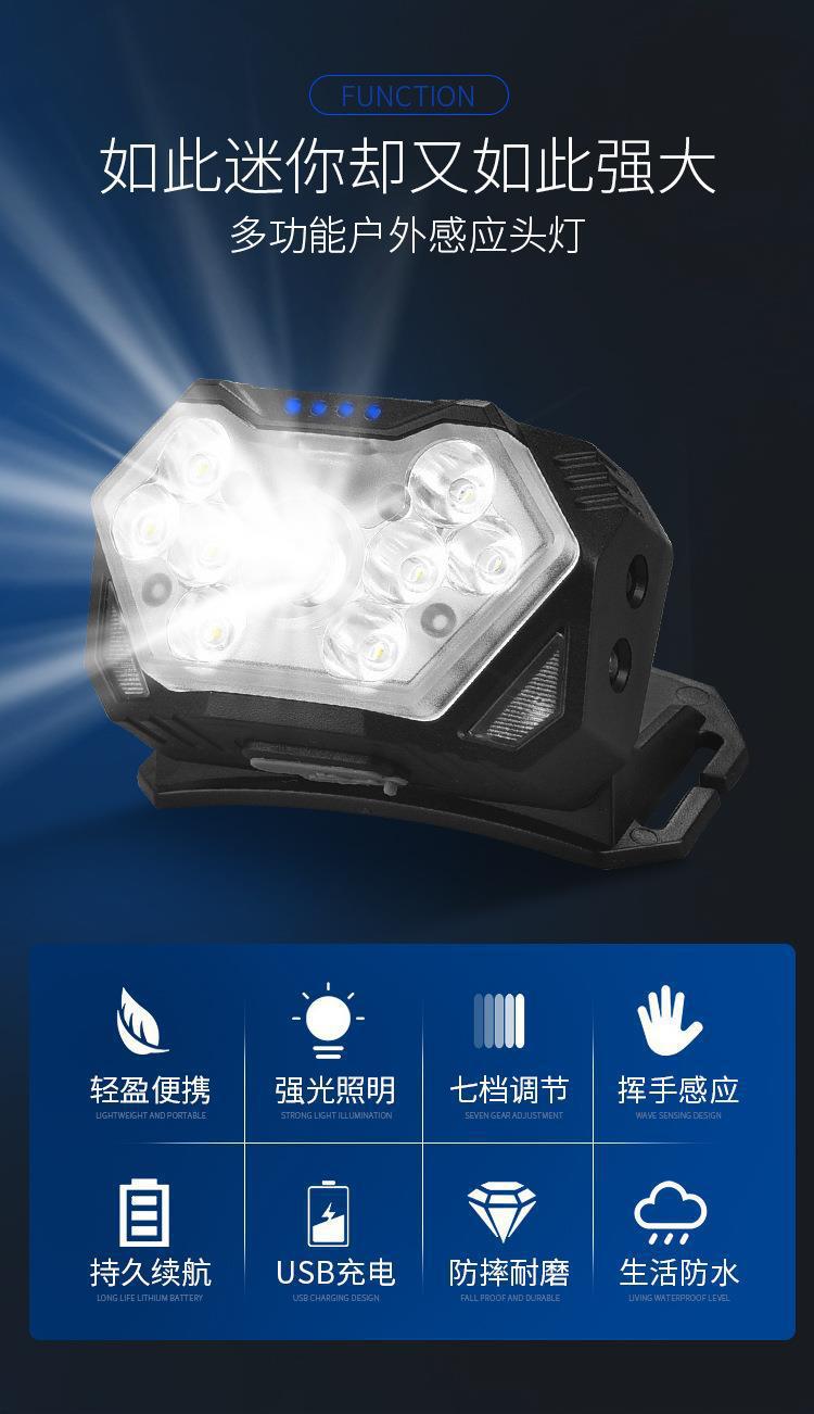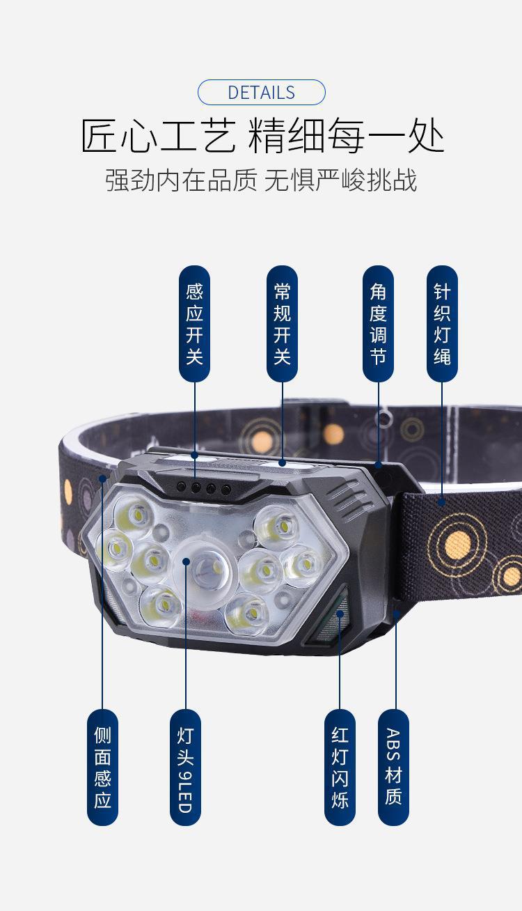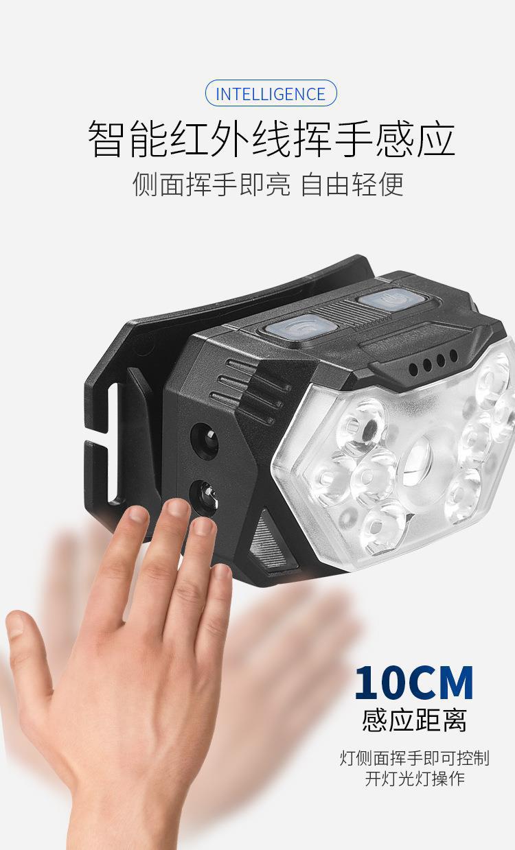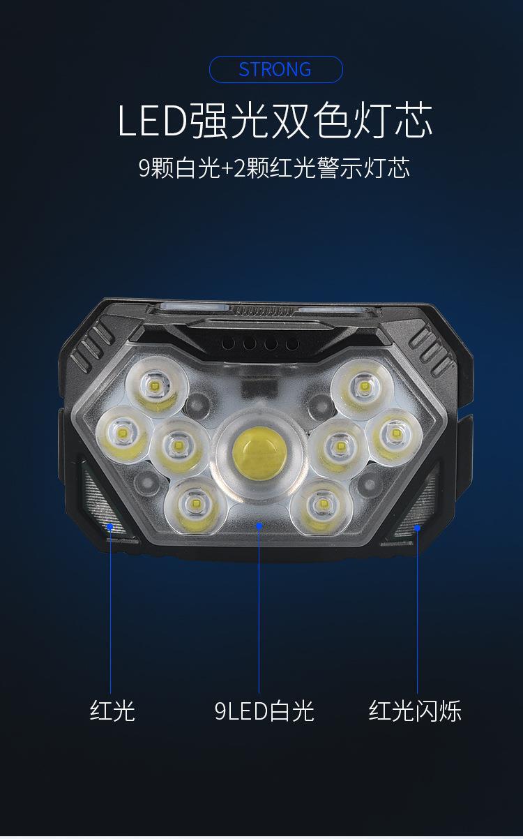 Новая светодиодная волнистая Индукционная фара на открытом воздухе COB красный свет предупреждение сильный свет Рыбалка езда работает Водонепроницаемая фара