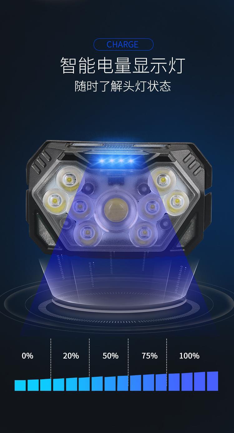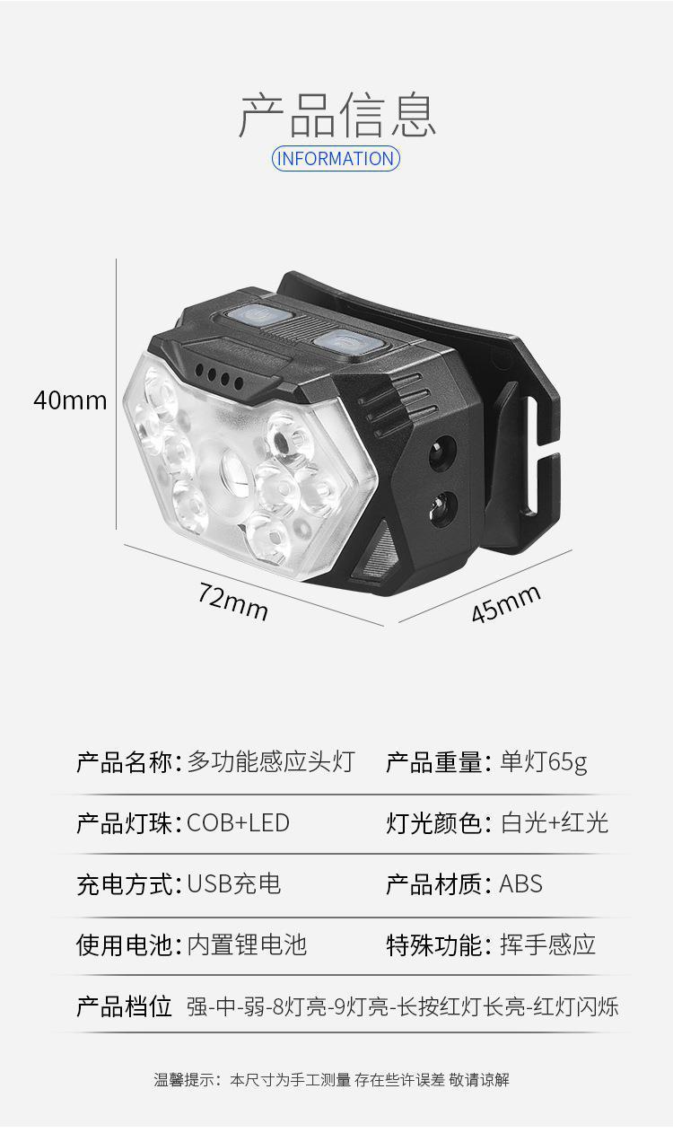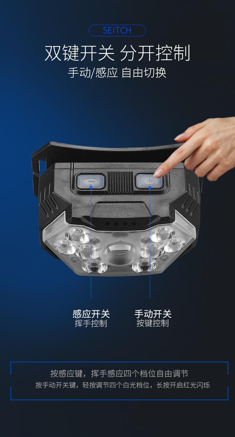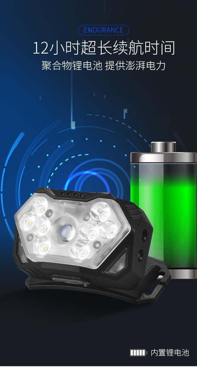 Новая светодиодная волнистая Индукционная фара на открытом воздухе COB красный свет предупреждение сильный свет Рыбалка езда работает Водонепроницаемая фара