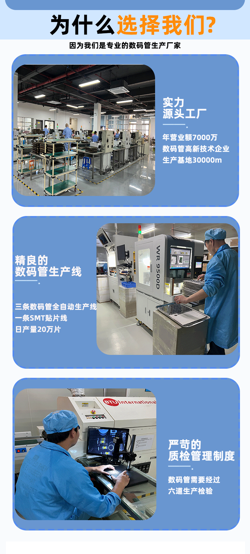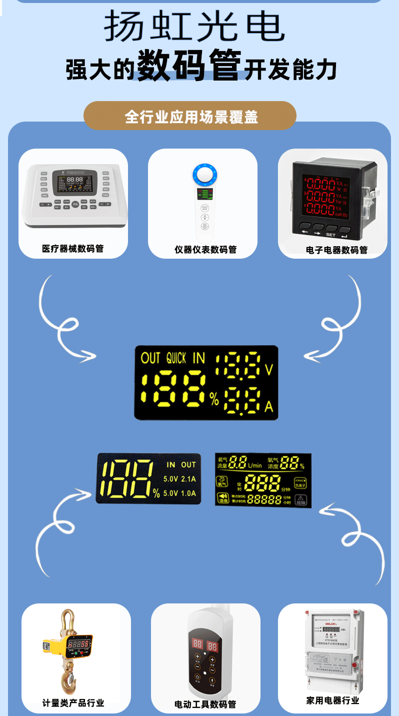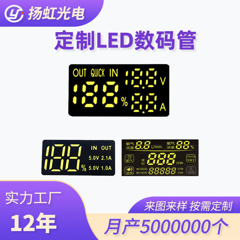 数码管为定制品,需开模定制,显示内容和尺寸都可以任意定制,批货单价需要根据所提供的尺寸和显示内容来计算,本链接展示的规格和价