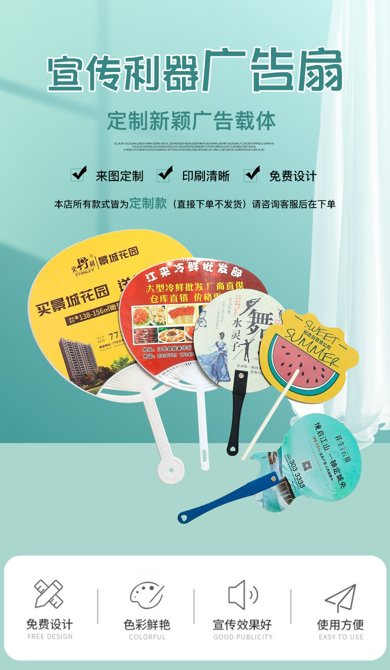 Оптовая продажа пластиковый мультяшный рекламный вентилятор Производство резиновых вентиляторов Подарки Реклама Рекламный вентилятор Предприятие печати логотипа