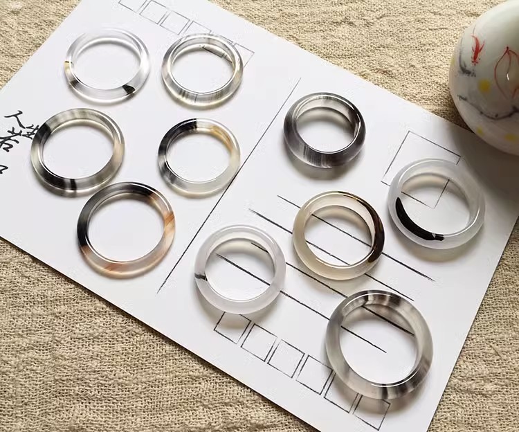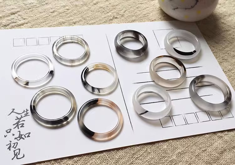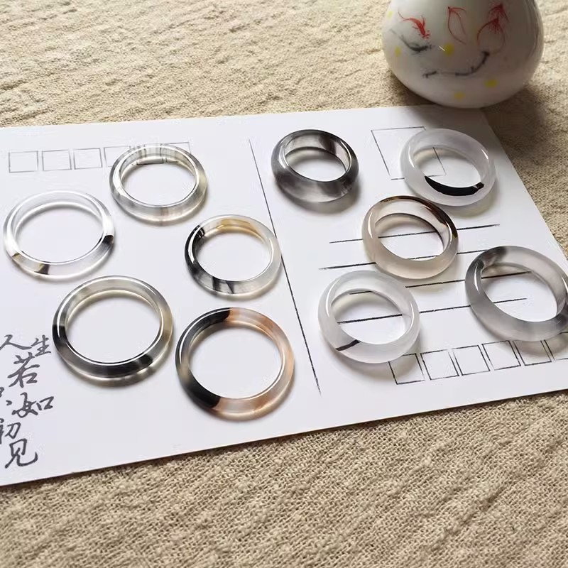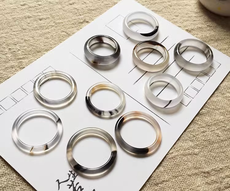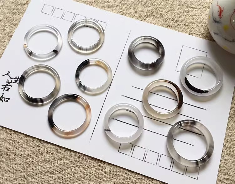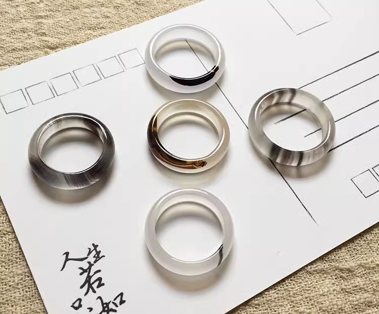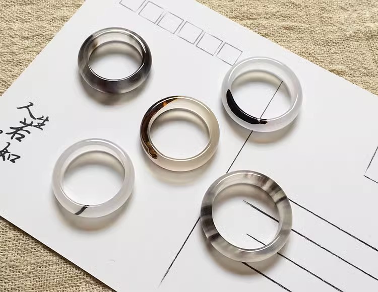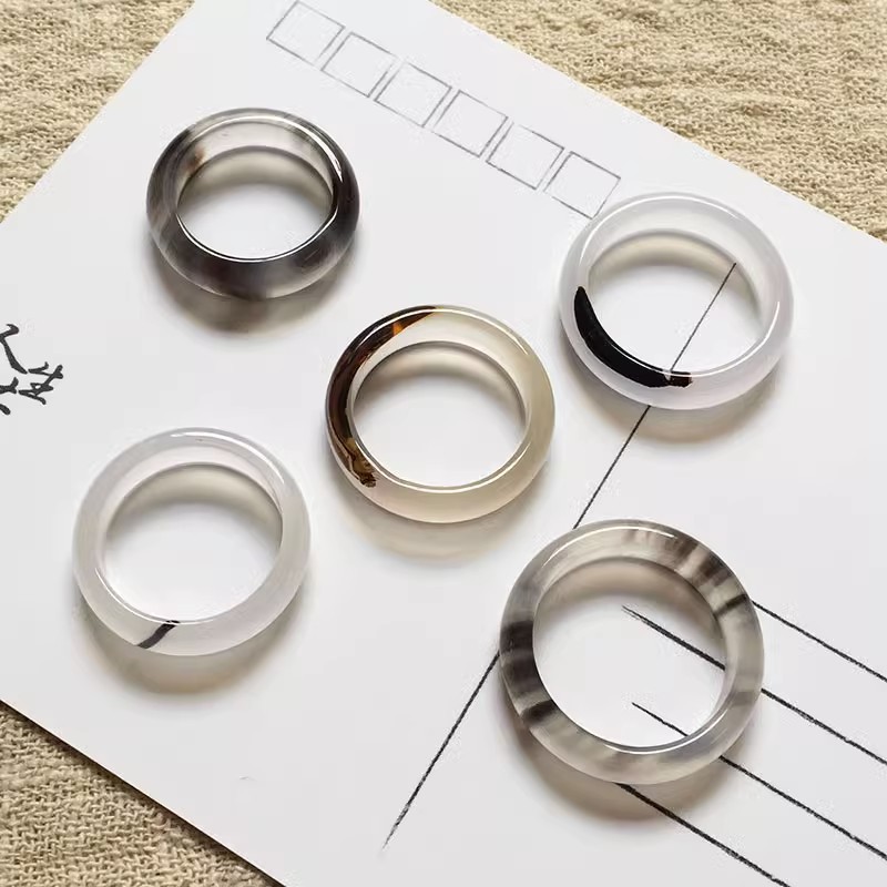 Чернила Серый Агат Кольцо Серый Античный Стиль Чернила Агат Нефрит Кольцо Халцедон Кольцо Ручное Кольцо Для Бега Хвост Кольцо