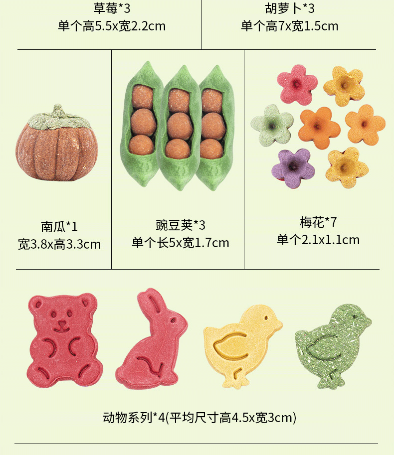 Хомяк-Тоторо-морковный вкус 1 ломтик; Хомяк-1 трехцветная рождественская елка; Хомяк-1 оранжевая рождественская елка; Хомяк, моляй-клубника 3; Хомяк-морковь 3; Хомяк-тыква 1; Хомяк, молярный зуб-7 сливовых цветов; Хомяк, моляй-животные серии 4; Хомяк-Фруктовая серия 4 шт.; Хомяк-3 гороха; Хомяк-три маленьких гриба; Хомяк-печенье из овечьего молока [Случайные три ломтика]; Хомяк-куриный пирог 2 ломтика; Хомяк моляра-4 твистых соломенных палочки; Хомяк-10 травяных палочек; Хомяк, молярный зуб-10 удлиненных травяных палочек; Хомяк моляра-2 веревки из цуккини; Хомяк моляр-1 кость