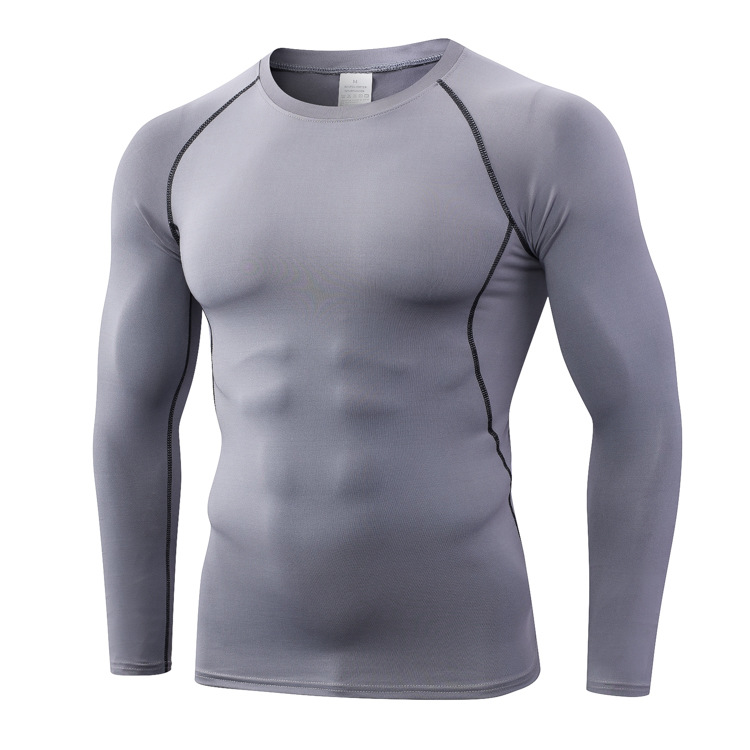 Горячая продажа для мужчин быстрый сухой спорт фитнес сжатый длинный рукав с круглым вырезом