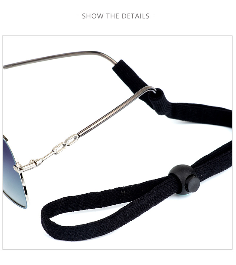 Веревка для очков Спортивная Регулируемая длина Мужская и женская веревка для бега с защитой от потери шеи Черные солнцезащитные очки Ремешок с защитой от падения из полиэстера и хлопка
