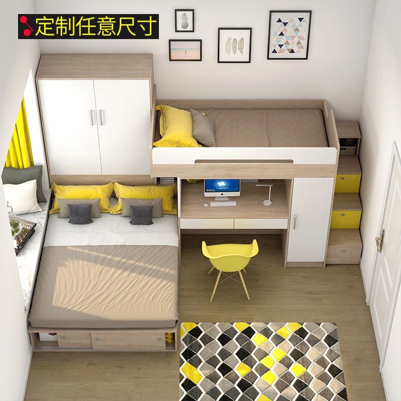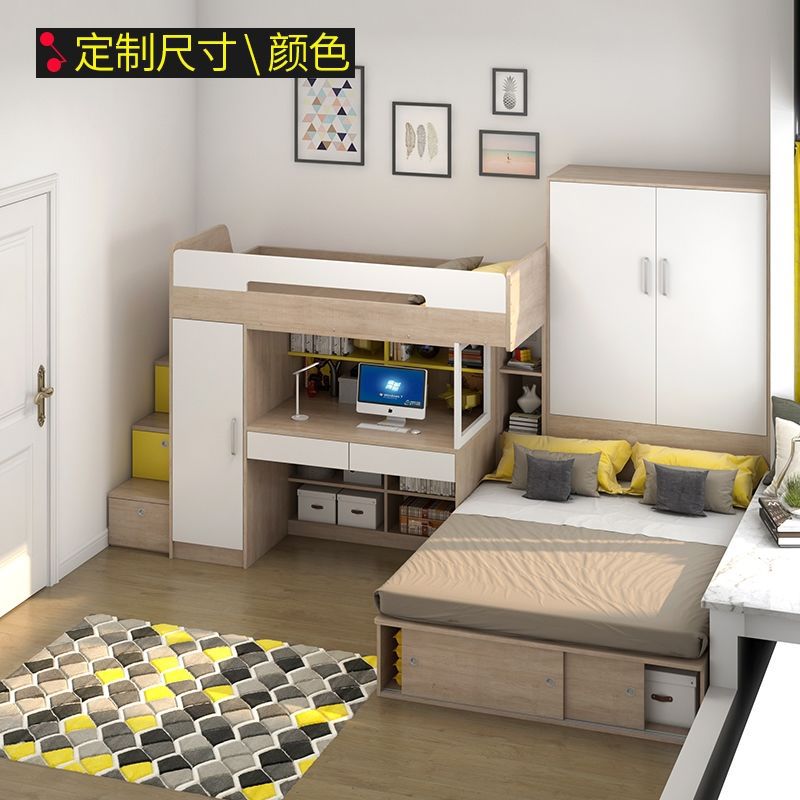 Детская двухъярусная кровать со столом, шкафом и раздельной конструкцией верхнего и нижнего ярусов, L-образная комбинация для хранения вещей, подходит для подростков, подходит для всего дома.