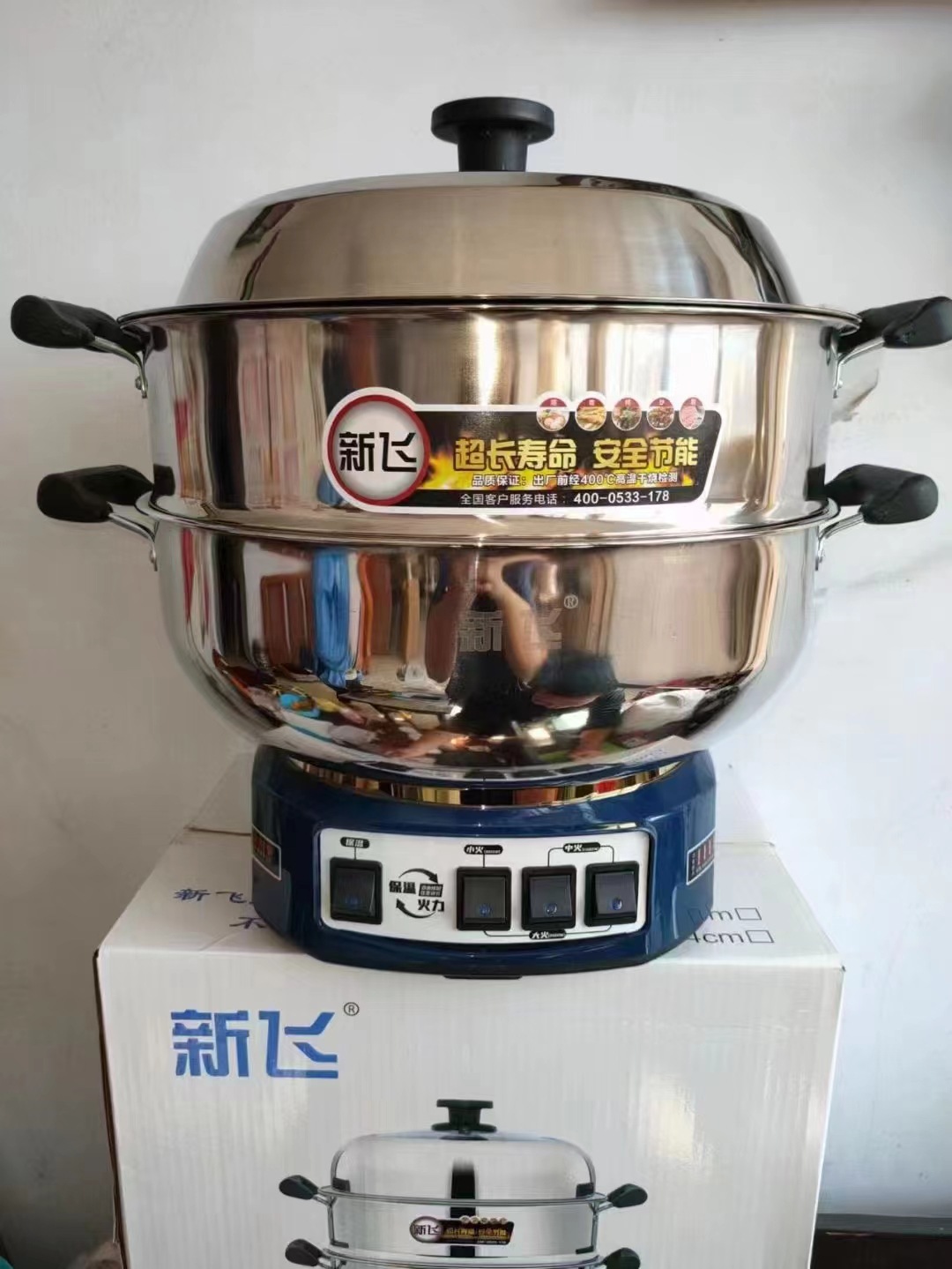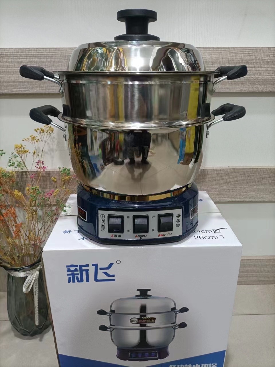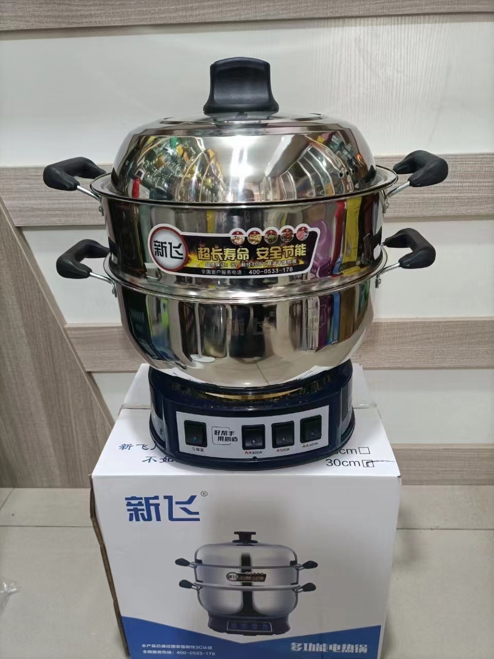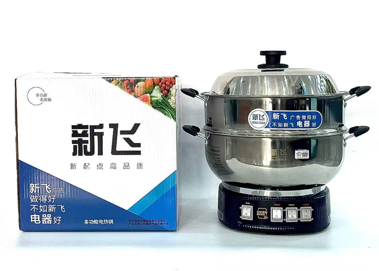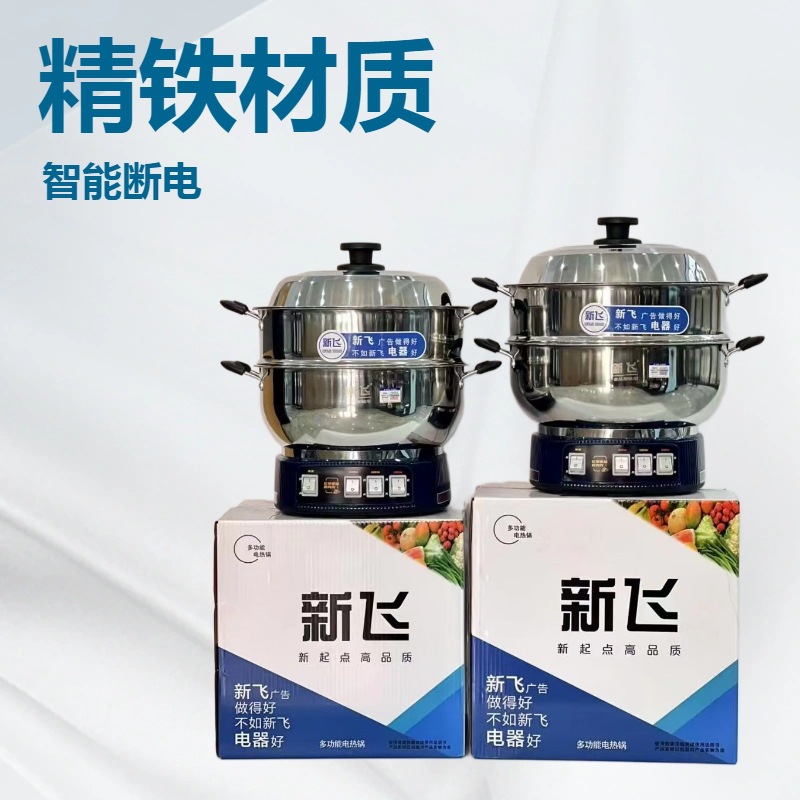 Xinfei Бытовой многоцелевой горшок Электрический ВОК из нержавеющей стали Электрический горячий горшок Многофункциональный Электрический Пароварка Утолщенная Большая насадка для горшка