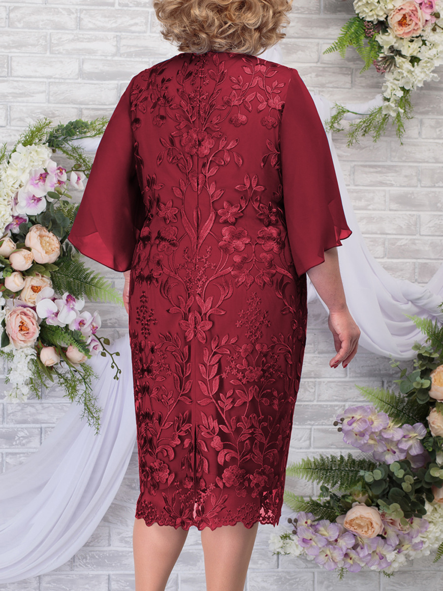 2023新款欧美女士圆领绣花休闲短袖包臀大码连衣裙现货