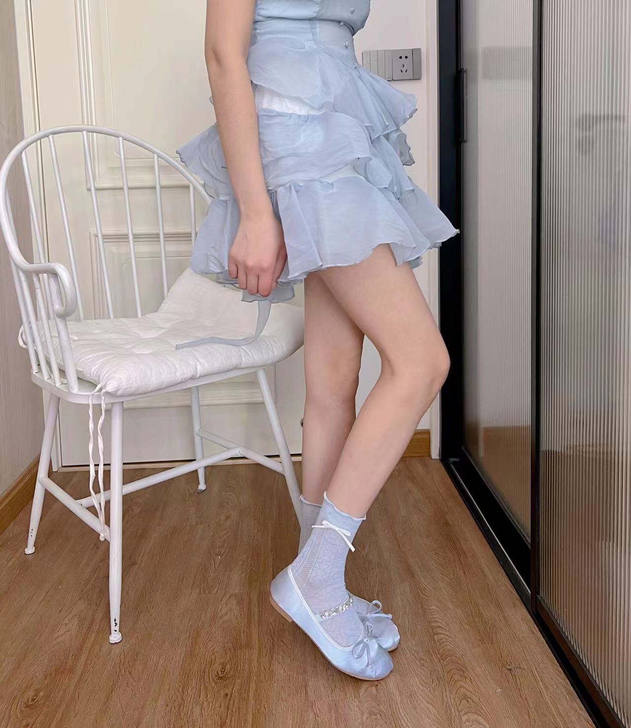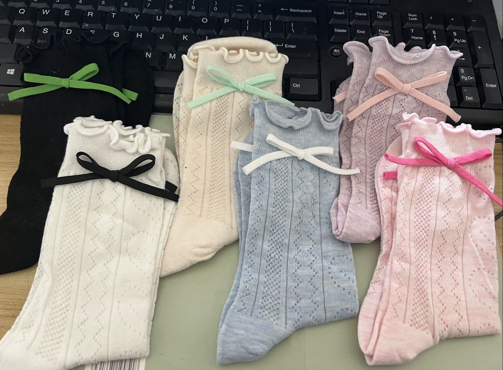 Милые подходящие ко всему летние новые высокие эластичные тонкие носки из хлопка и дерева с ушками и сердцем с полым бантом в виде макарон в японском стиле
