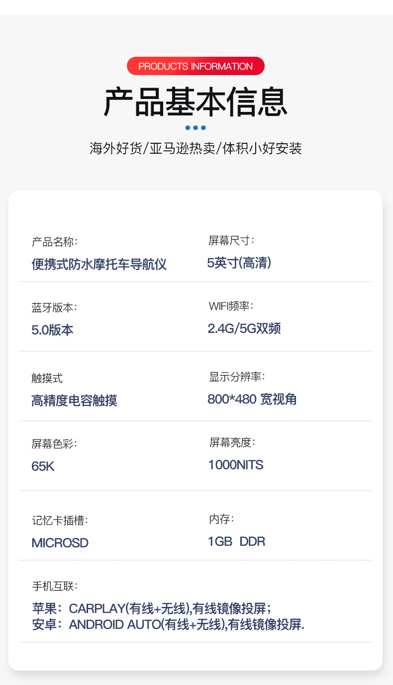 Оптовый трансграничный мотоциклетный локомотив портативный водонепроницаемый 5-дюймовый беспроводной мотоцикл CarPlay GPS навигатор