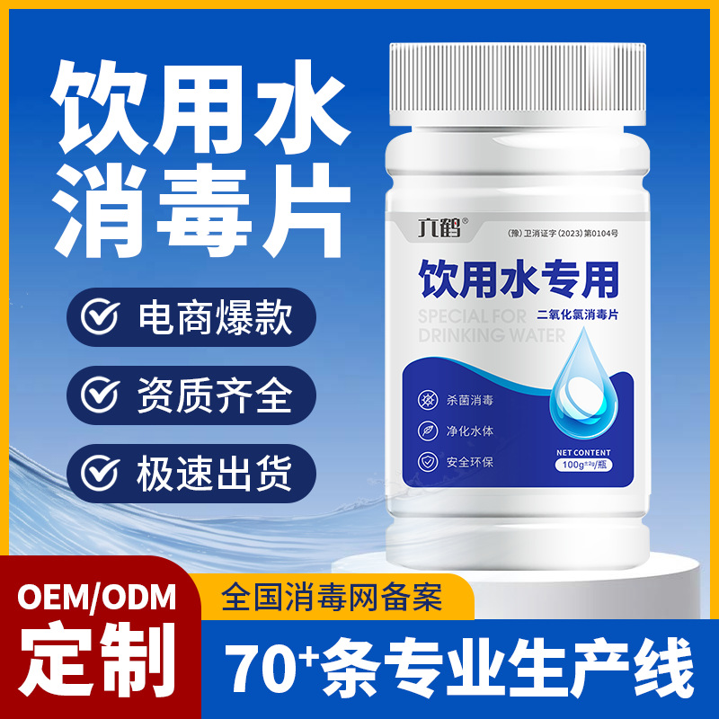 50 г таблеток с гипохлоритной кислотой для дезинфекции в общественных стиральных машинах; Дезинфицирующие таблетки диоксида хлора 100 г; Дезинфицирующие таблетки с гипохлоритной кислотой, 100 г; Таблетка для дезинфекции с трихлором 100 г; Специальные дезинфицирующие таблетки для питьевой воды 100г.; Таблетки дезинфицирующего средства с трихлоризоциануровой кислотой (TCCA), 500 г