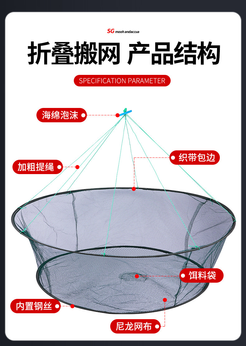 Оптовая продажа открытая складная сеть для перемещения рыбы цитра в крабовых клетках рыболовные снастей
