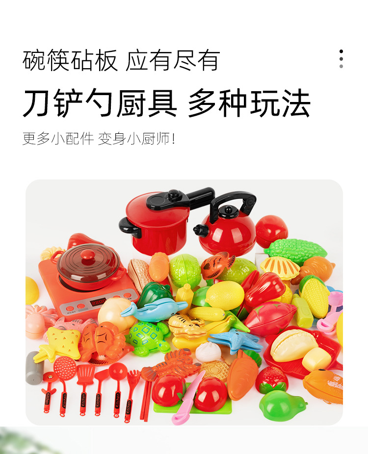капуста; Лотосовый туман; ананас; клубника; помидор; Диталлупа; манго; маленькая груша; пельмени; дракон фрукт; горькая дыня; перец чили; редис; кукуруза; гриб; лимон; яблоко; банан; маленький оранжевый; Зеленый перец; арбуз; тыква; пол дыня; киви фрукты; виноград; Баклажаны; белая сумка; Лук; картофель; яйца; Капуста; персик; Не режете белую упаковку.; Не нарезайте яйца; Не резать булочки на пару.; Не нарезайте шлюночную колбасу; Неразрезанное печенье, набор из 3 предметов.; Набор из 3 предметов: нож, вилка и ложка; доска для ножей; нож; пицца; корзина; Кухонный гарнитур из 24 предметов (со звуковыми и световыми эффектами); розовый торт; синий торт