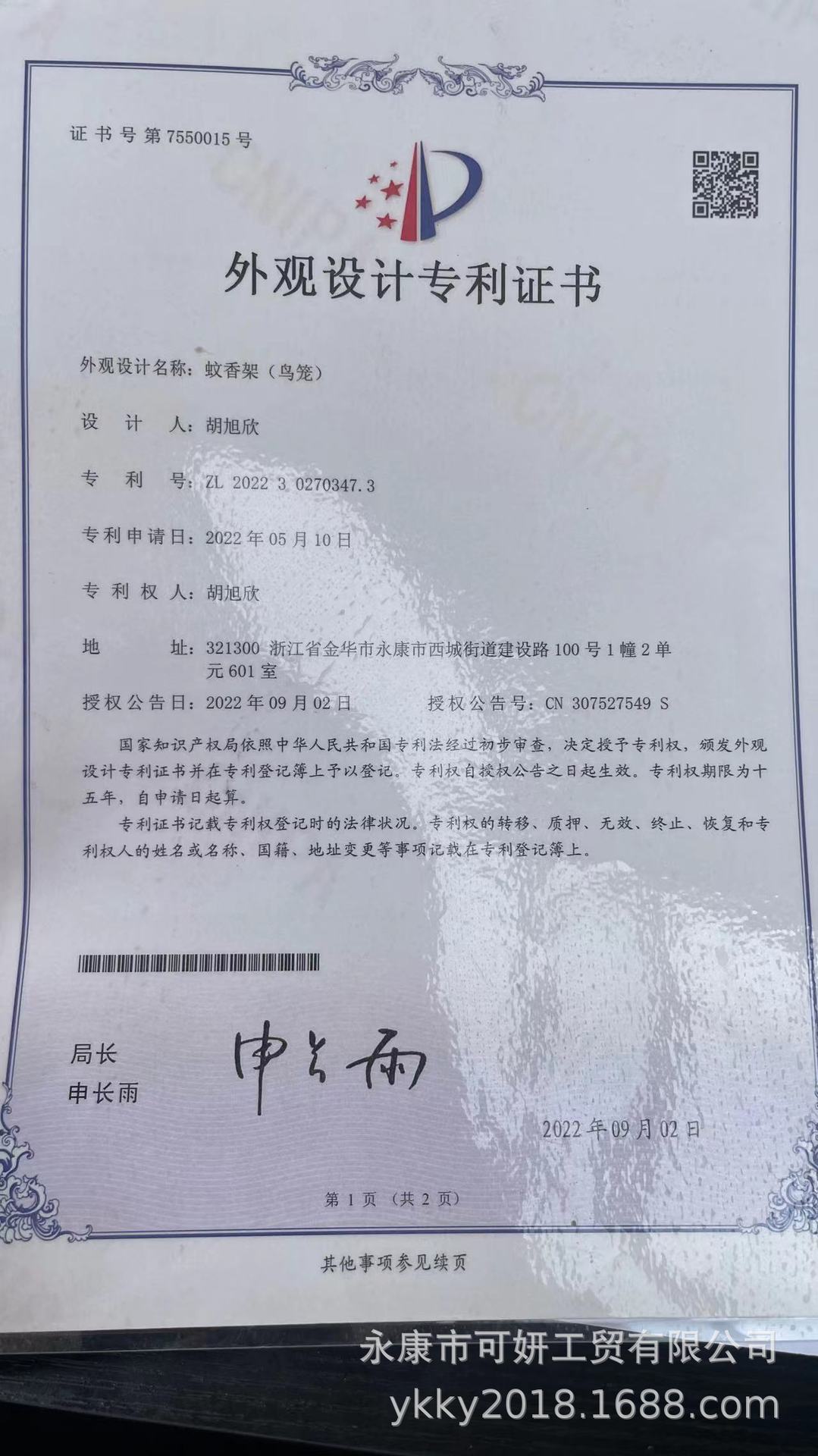 鸟笼蚊香架是自有专利,小伙伴们放心卖。