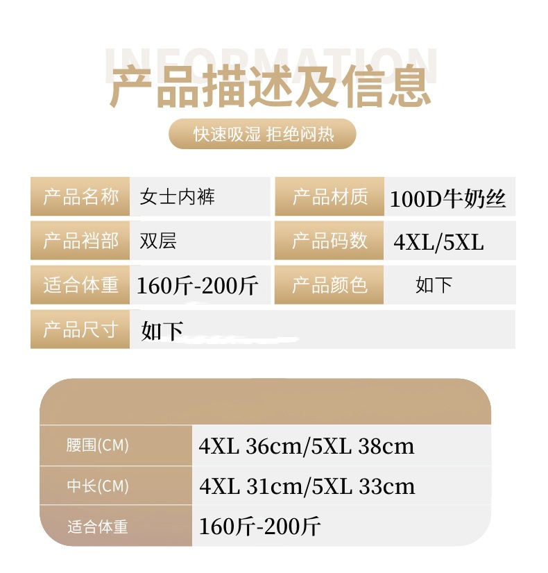Женское нижнее белье больших размеров из молочного шелка с высокой талией, 100kg женских свободных простых трусов больших размеров оптом