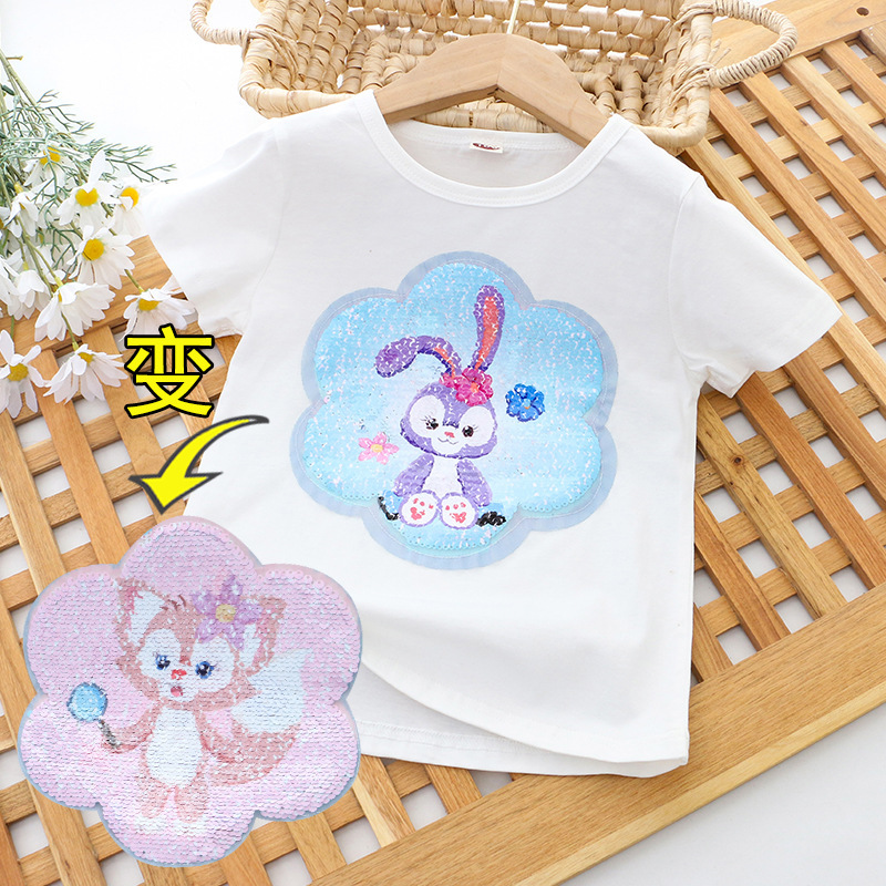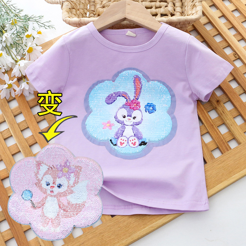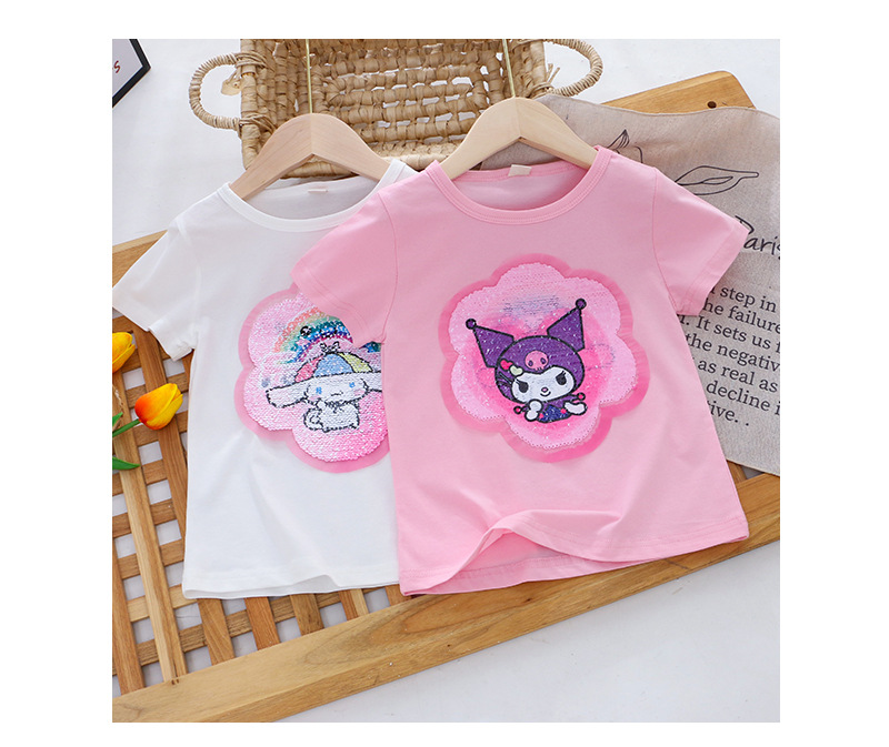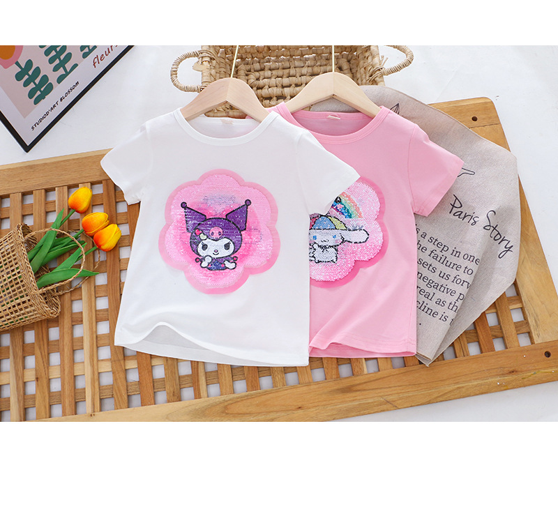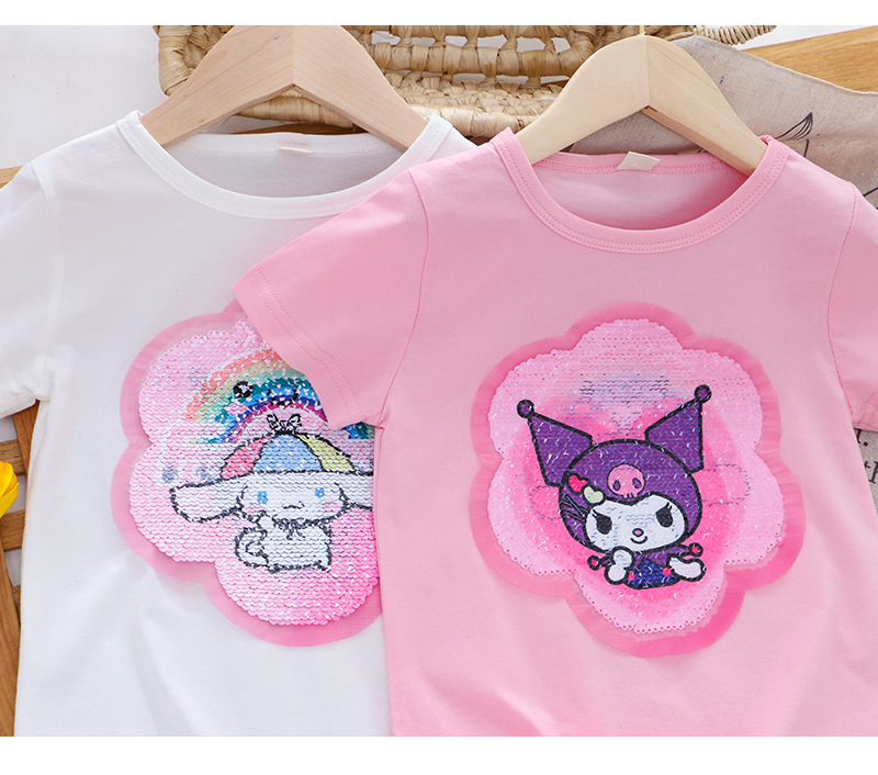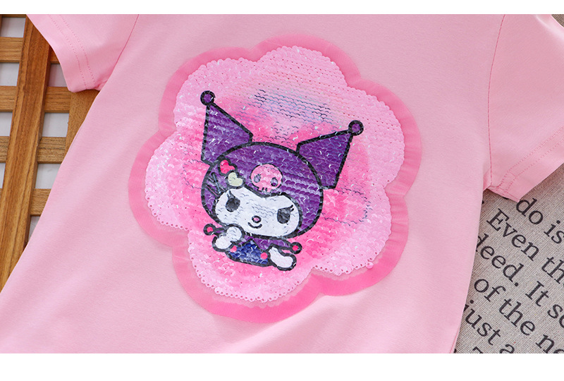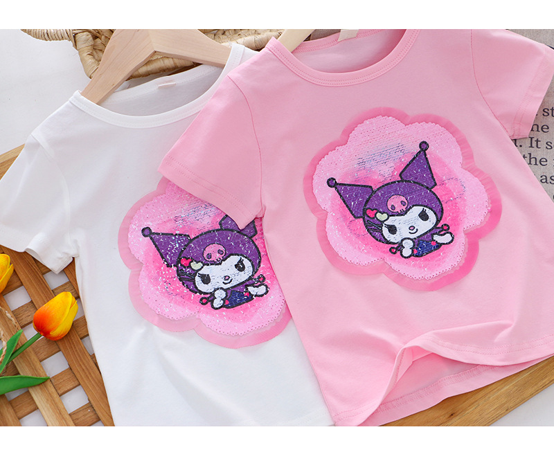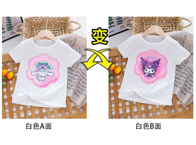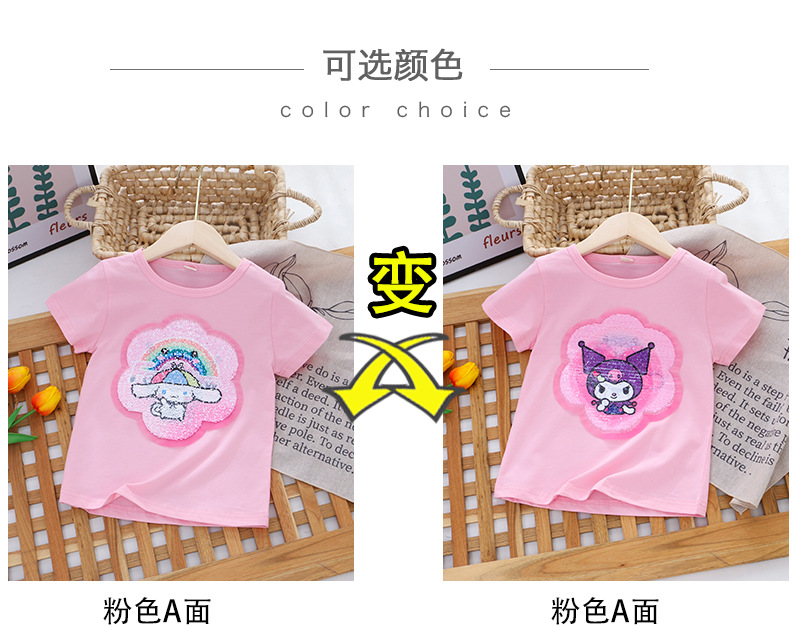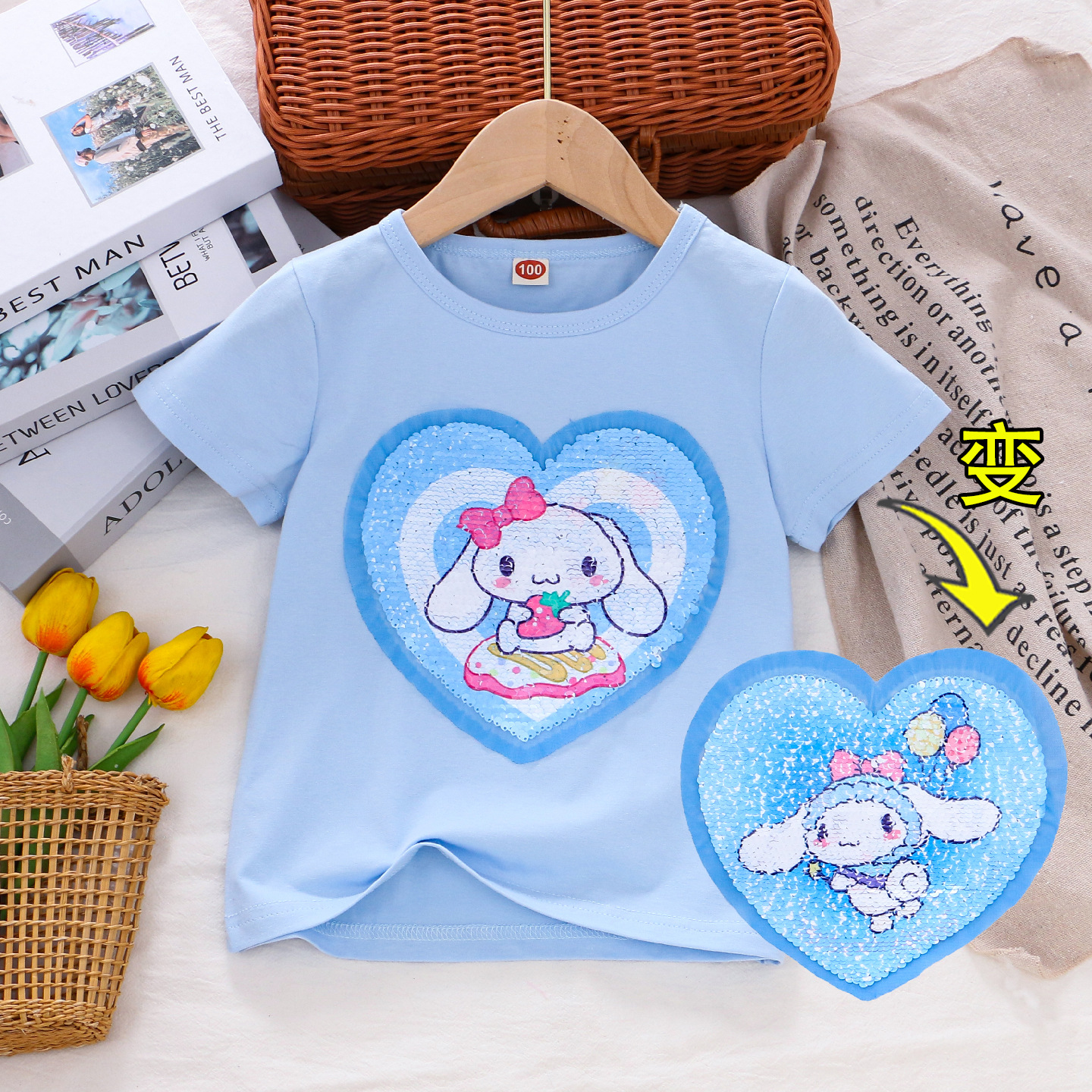 Базовая рубашка для девочек. 25 новой детской одежды. Летняя футболка с короткими рукавами и меняющими цвет пайетками для маленьких девочек. Базовая рубашка Kuromi.
