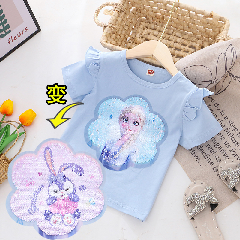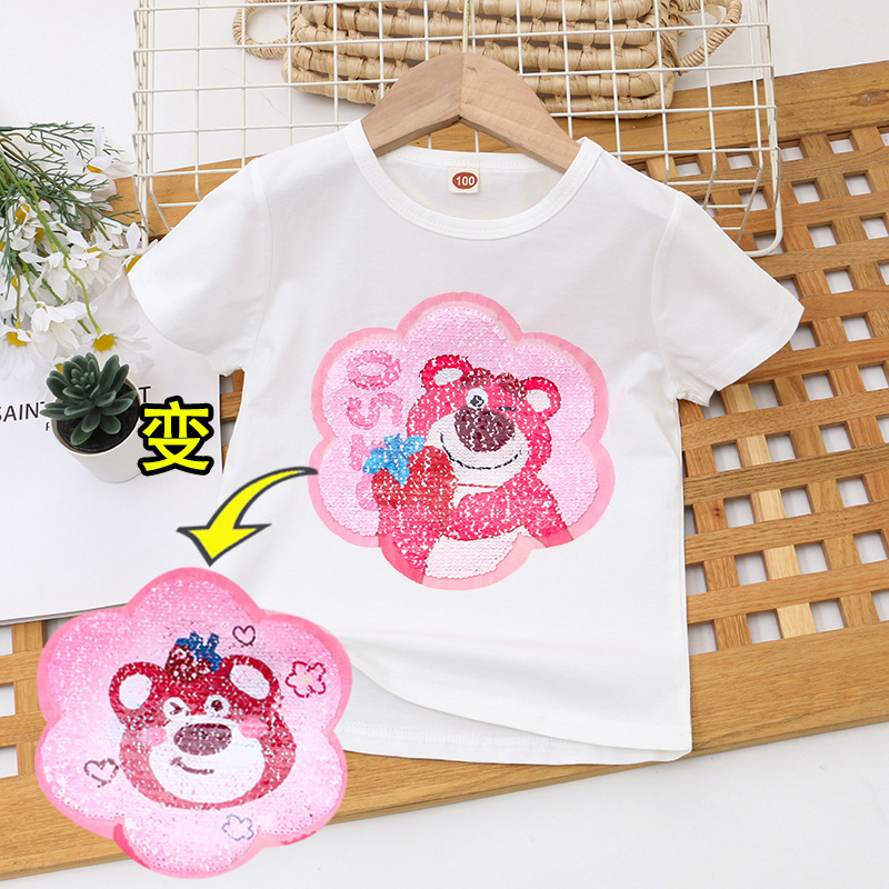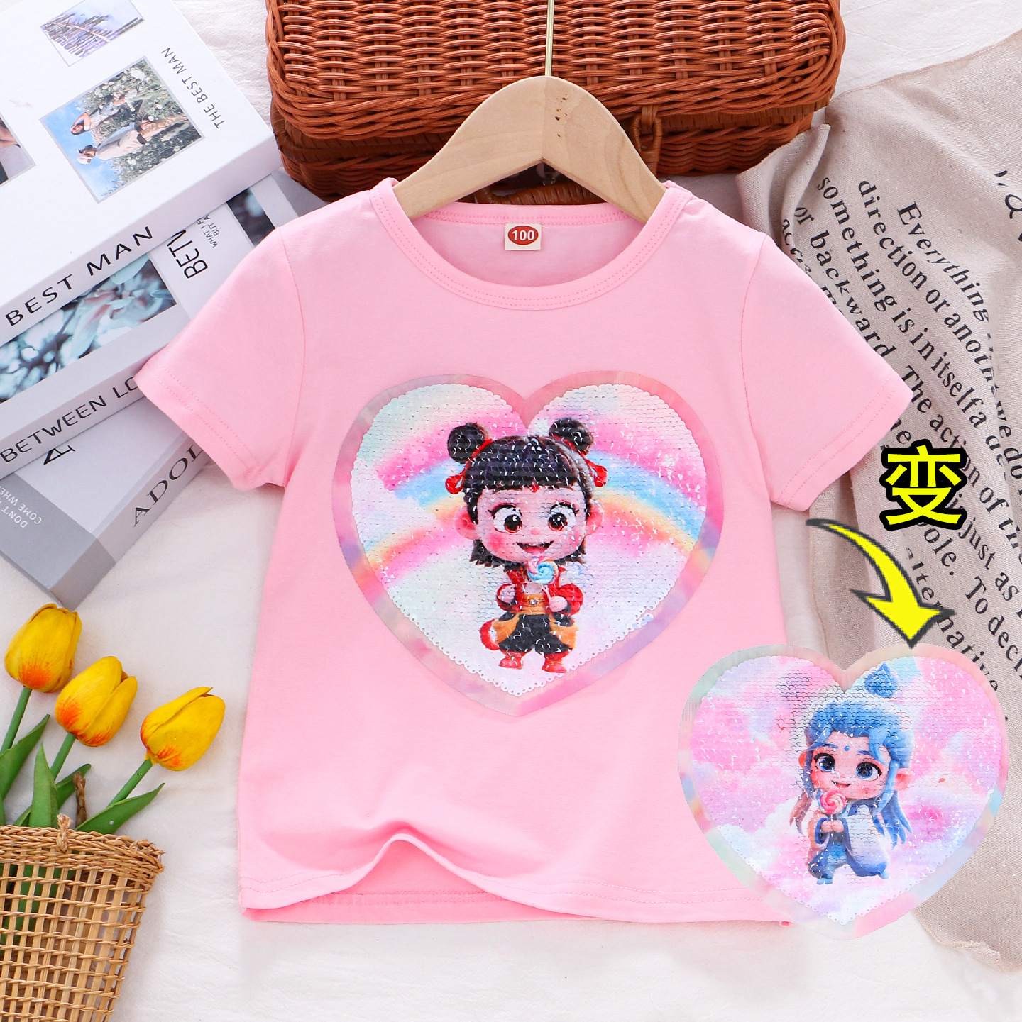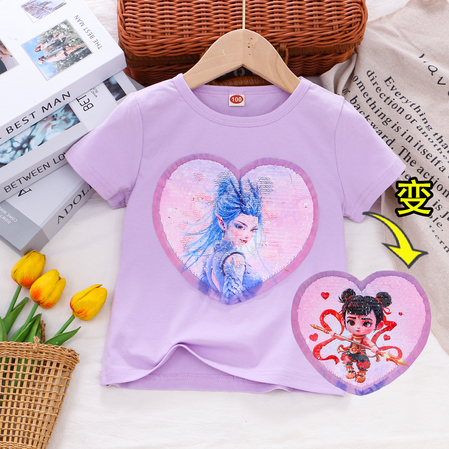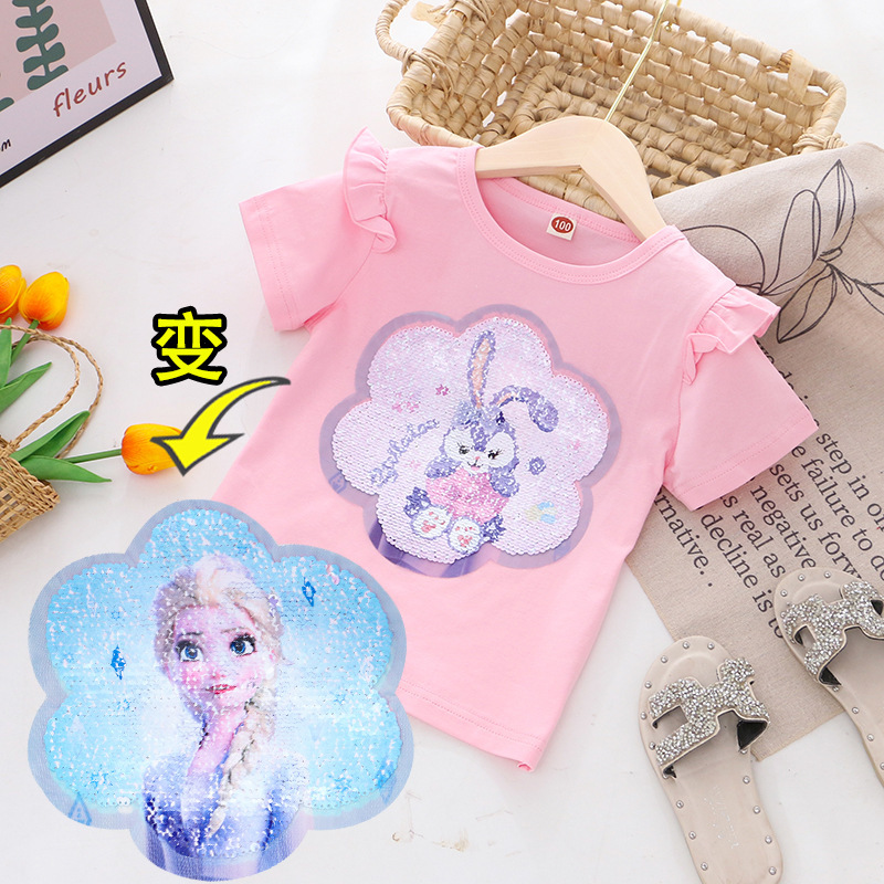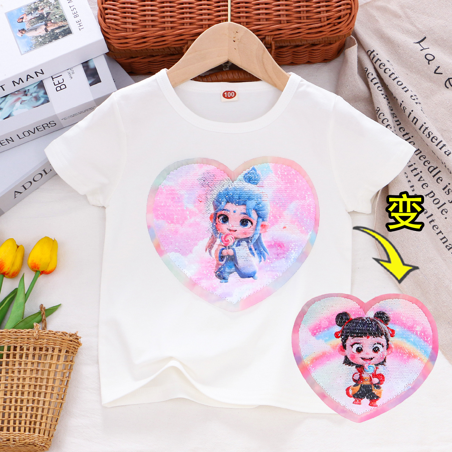 Базовая рубашка для девочек. 25 новой детской одежды. Летняя футболка с короткими рукавами и меняющими цвет пайетками для маленьких девочек. Базовая рубашка Kuromi.