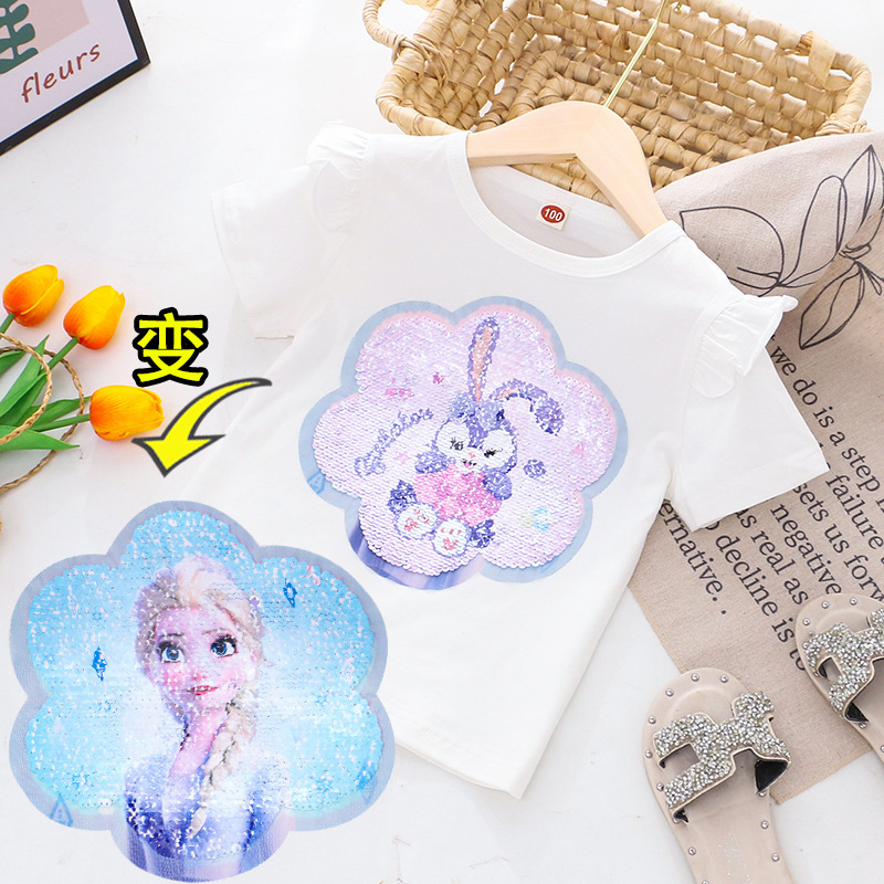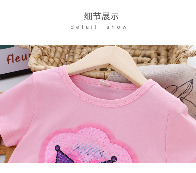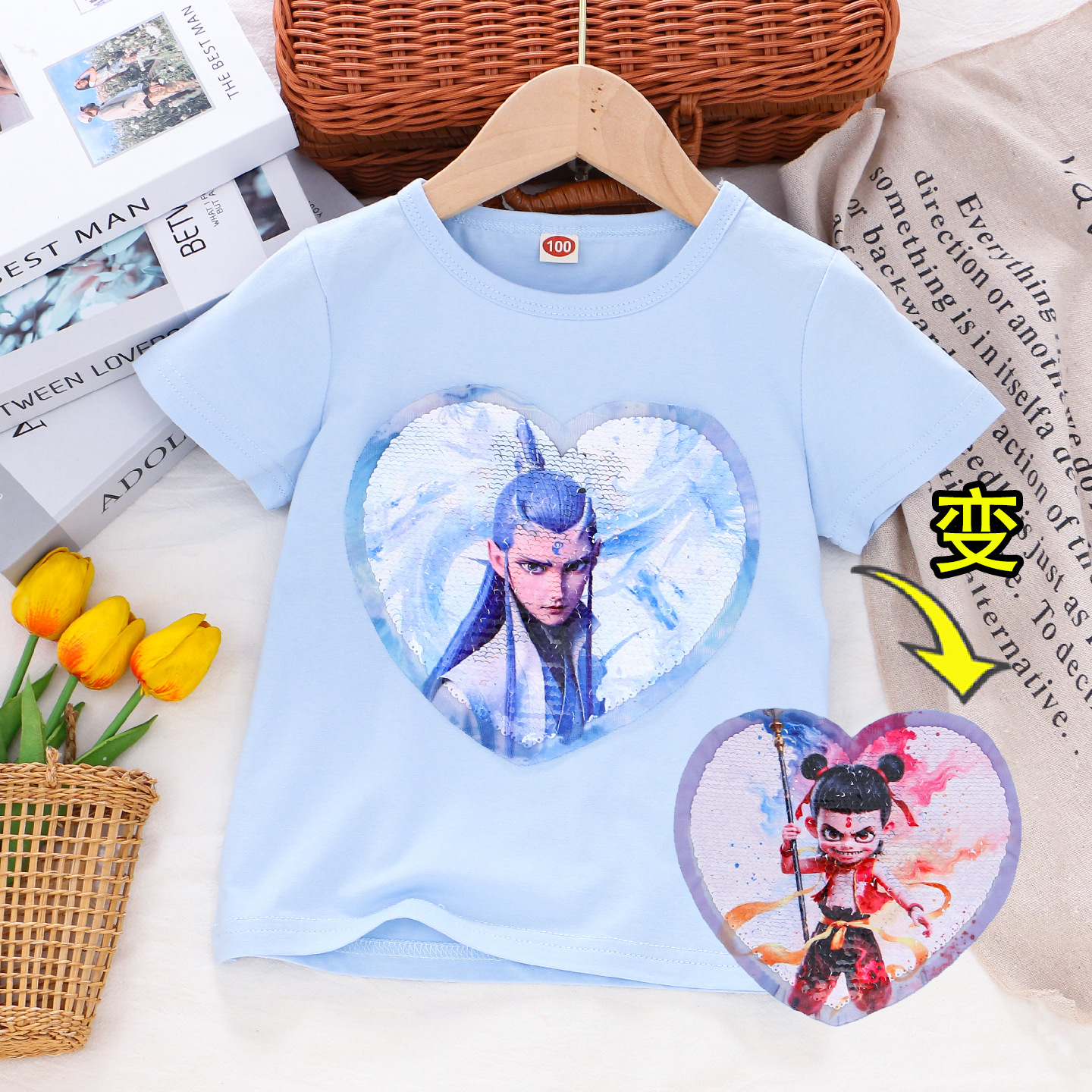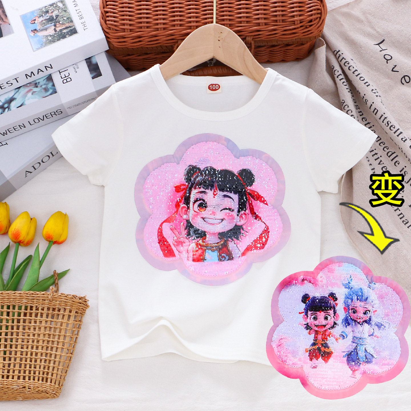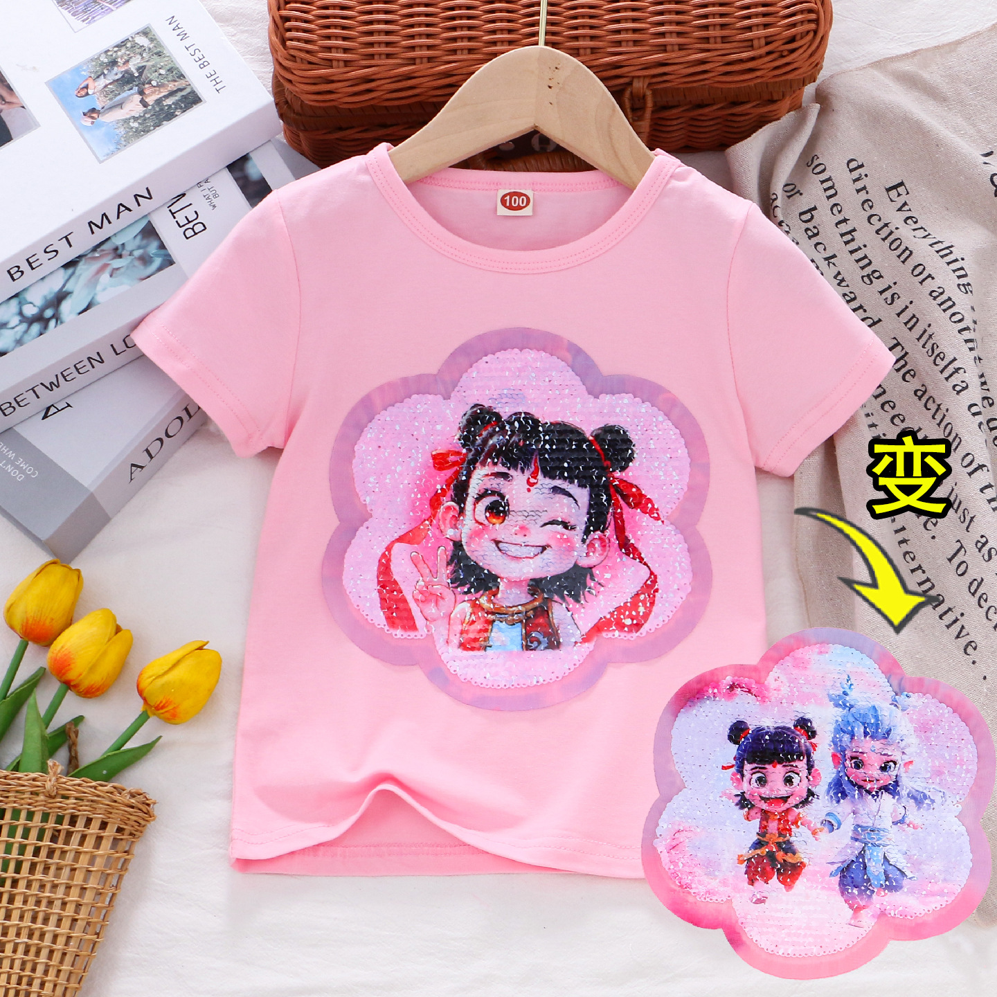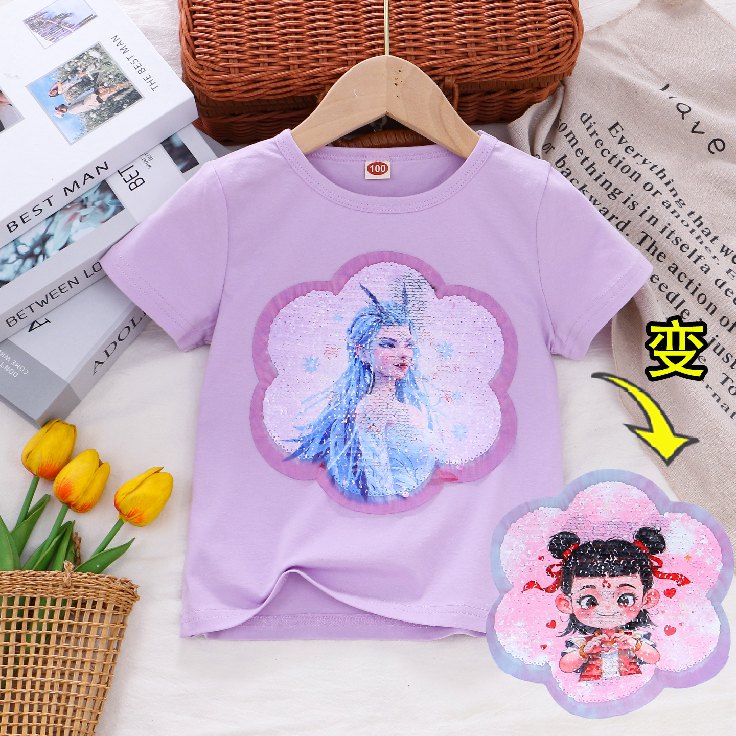 Базовая рубашка для девочек. 25 новой детской одежды. Летняя футболка с короткими рукавами и меняющими цвет пайетками для маленьких девочек. Базовая рубашка Kuromi.