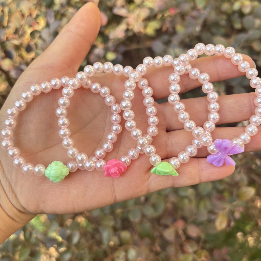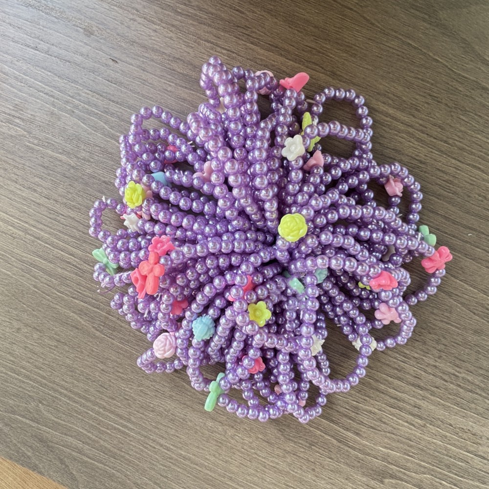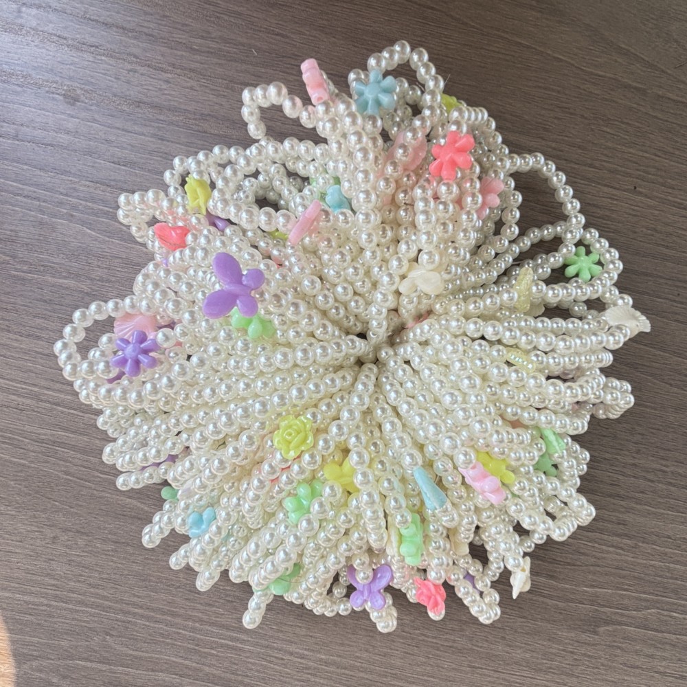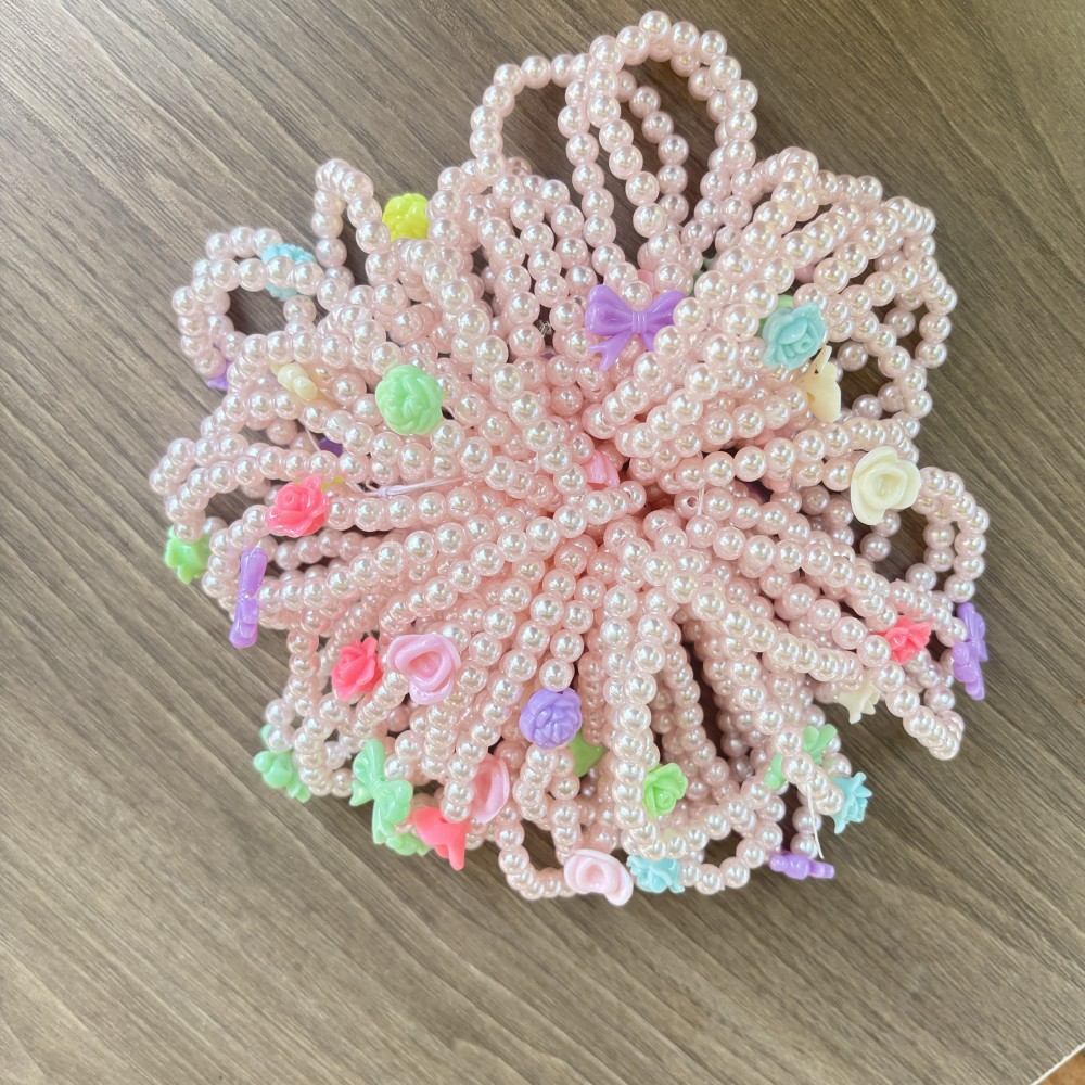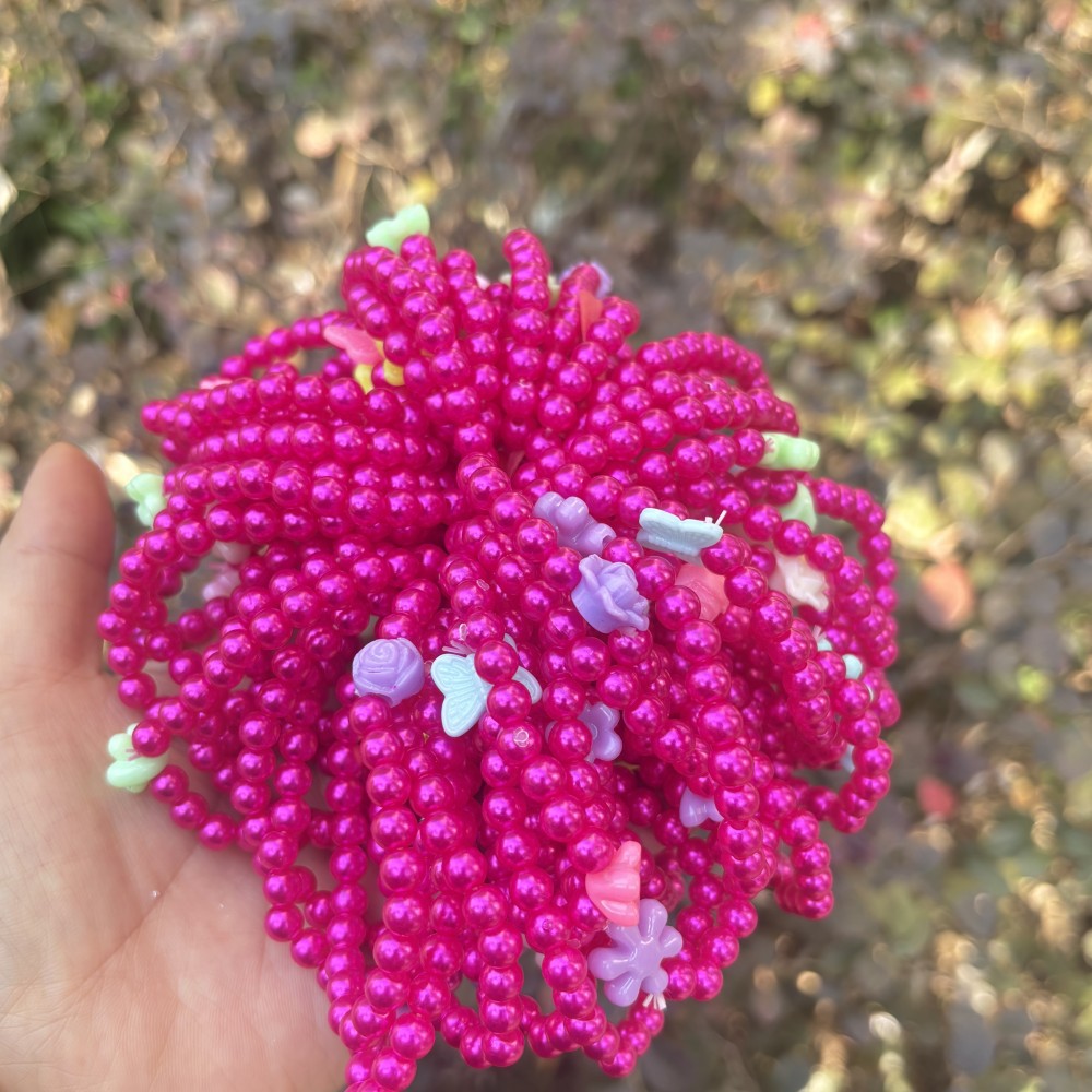 颜色:如图粉色,淡紫色,玫红,米白色,小珍珠大小约6MM,中间的图案有多种,随机发不能选哈.