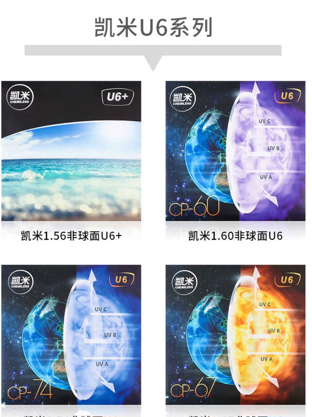 Kemi U6 линза для близорукости с синим светом U2 Ультра-румяна 1.671.74 Ультратонкая асферическая линза с числом высоты