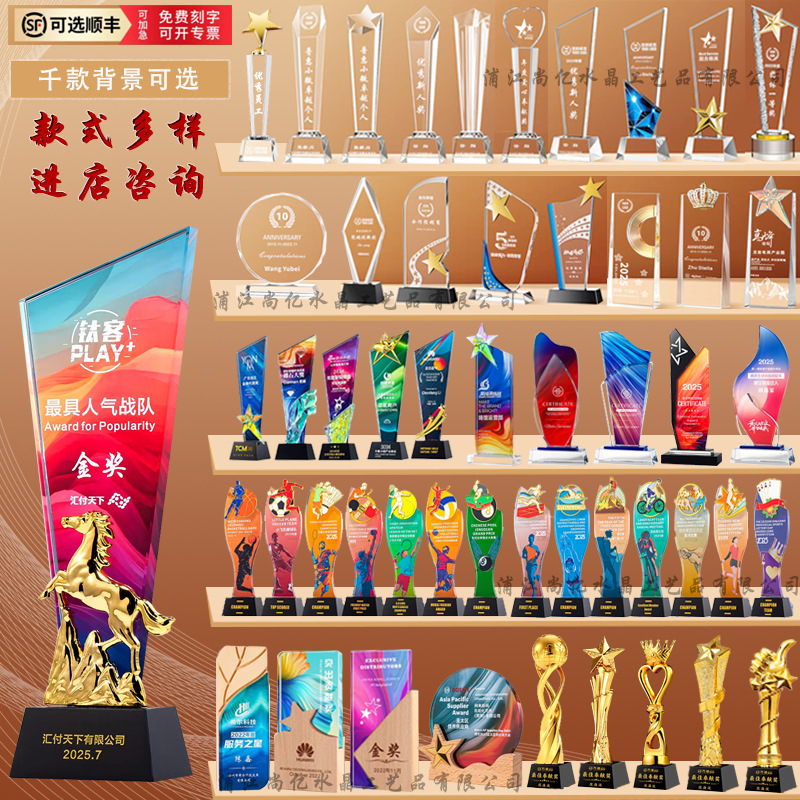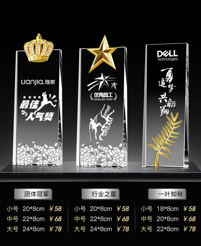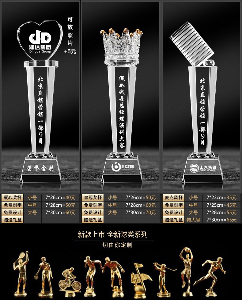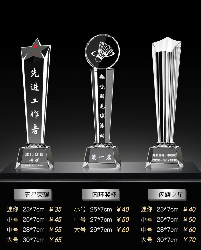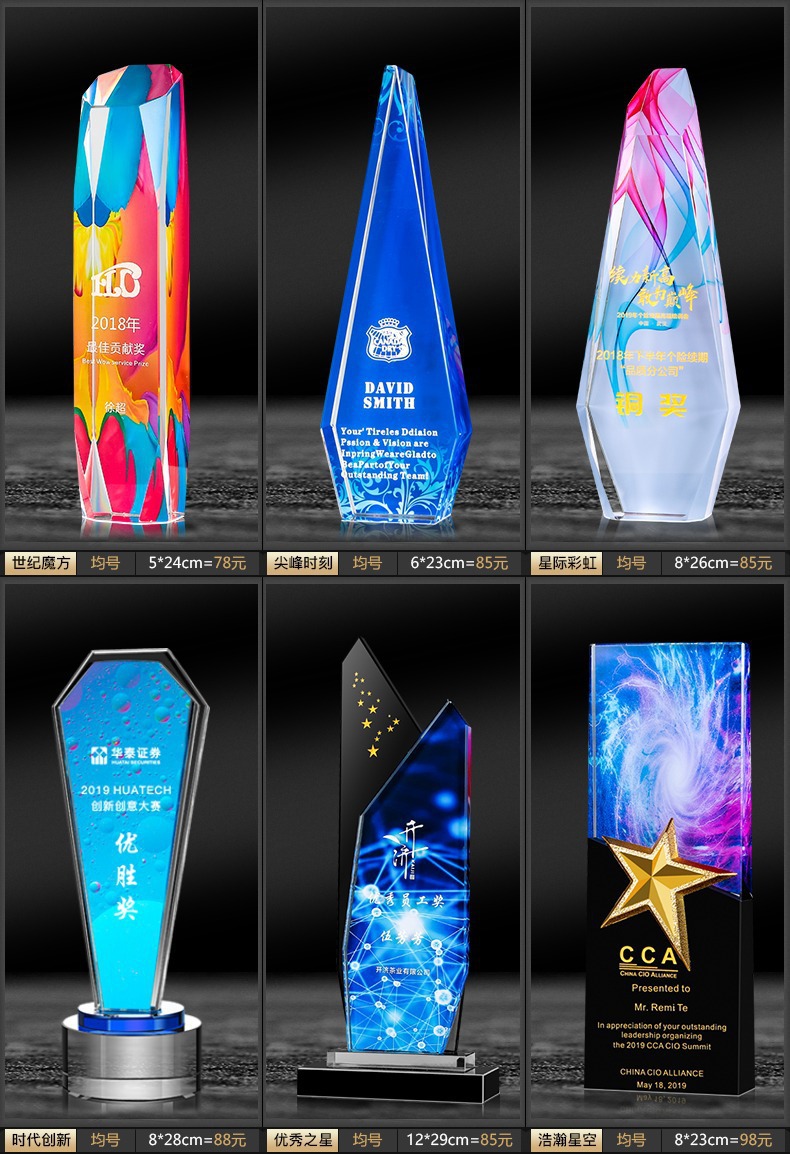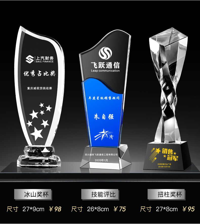 Специальное предложение медаль; Специальное предложение в мини-стиле; Мини-стиль; Хрустальный трофей (пожалуйста, обратитесь в службу поддержки для уточнения конкретных стилей); Обычный хрустальный трофей; Цветной Печатный хрустальный трофей; Деревянный трофей; Смола Трофи