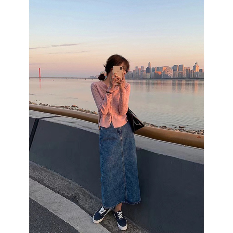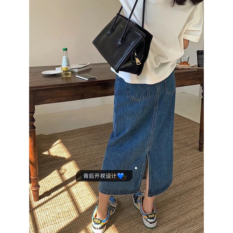 Джинсовая юбка для беременных, поддерживающая живот, на весну и осень, эластичная свободная прямая юбка средней длины с разрезом, весна и лето