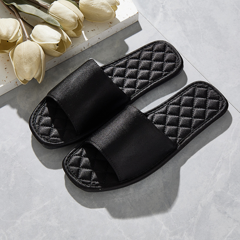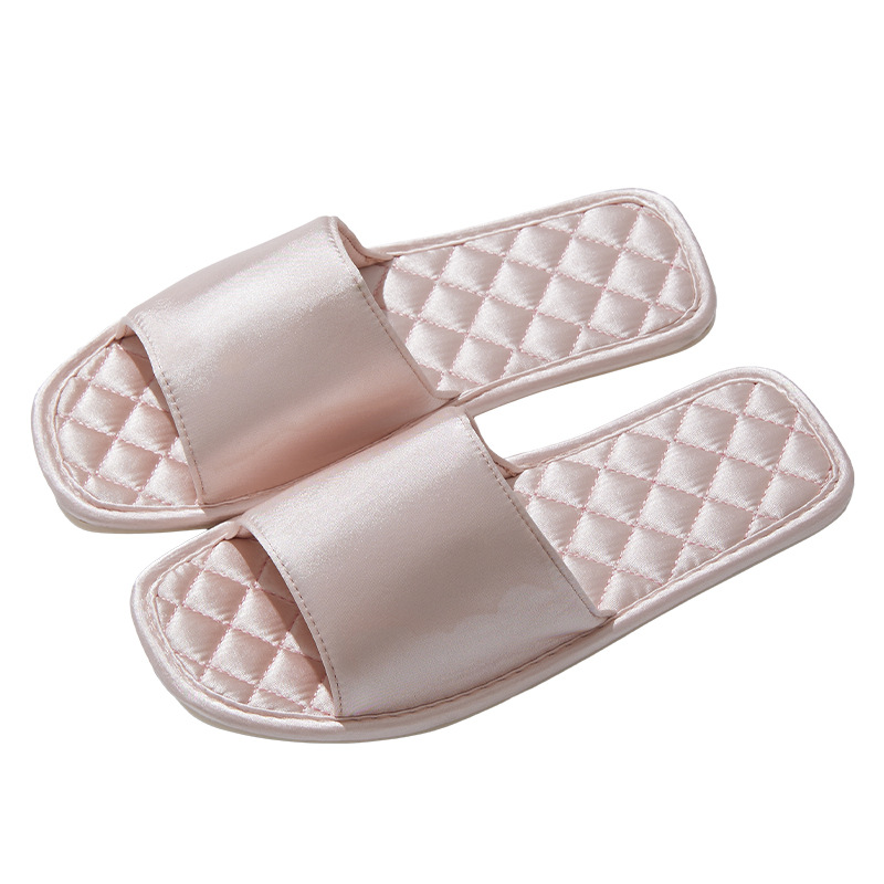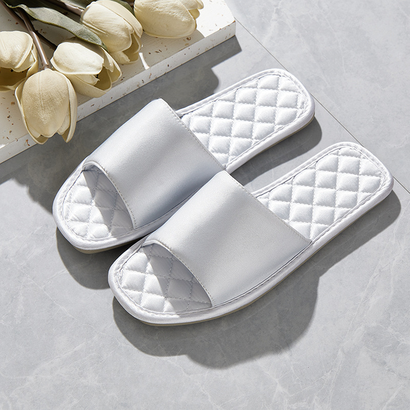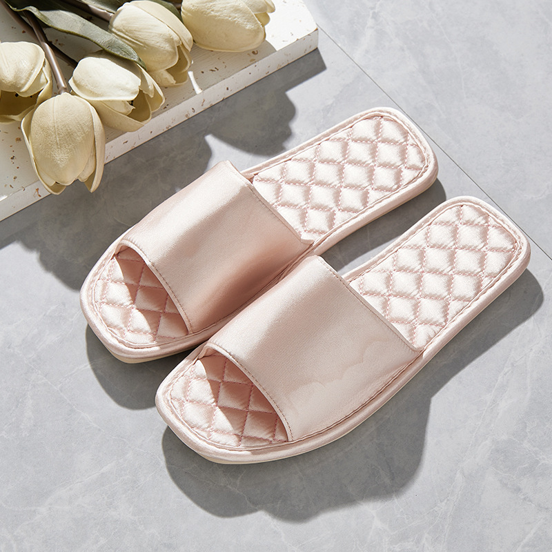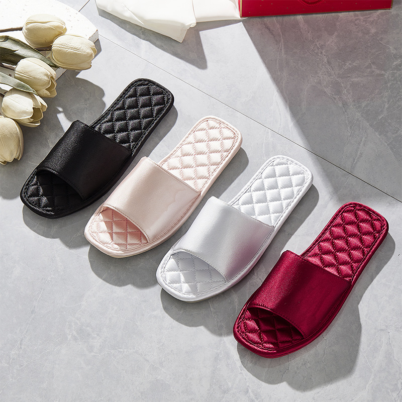 Легкие роскошные свадебные тапочки во французском стиле, женские летние удобные нескользящие шелковые атласные тапочки на плоской подошве с квадратной головкой для домашнего использования в помещении