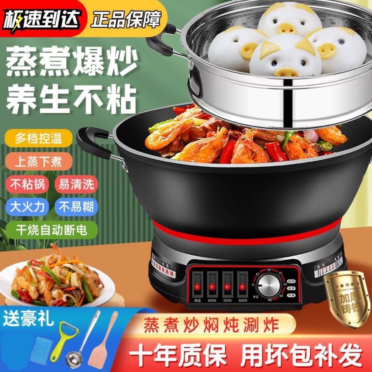 Многофункциональная электрическая плита с антипригарным покрытием, Электрический ВОК, общежитие, небольшая электрическая плита, электрическая пароварка, бытовой Электрический ВОК