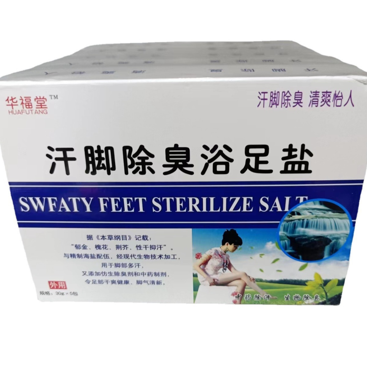 Huafutang потеет для ног соль для ванн для ног дезодорант для ног вода для ванн для ног соль для ног 30 г * 5 упаковок/коробка для улучшения пота ног