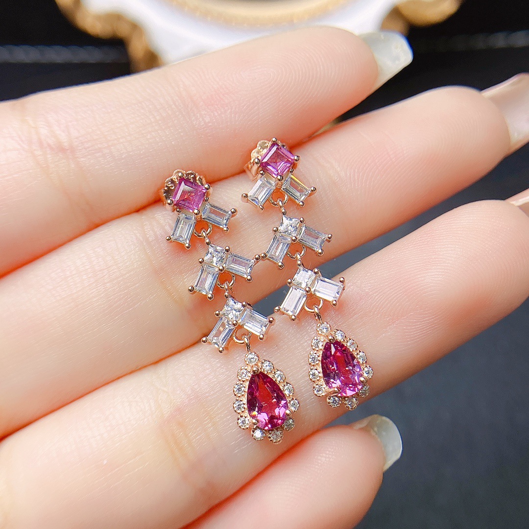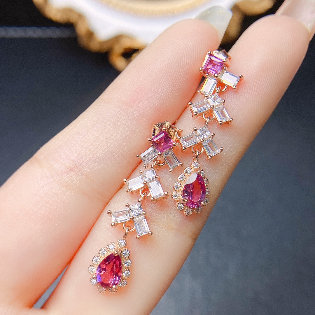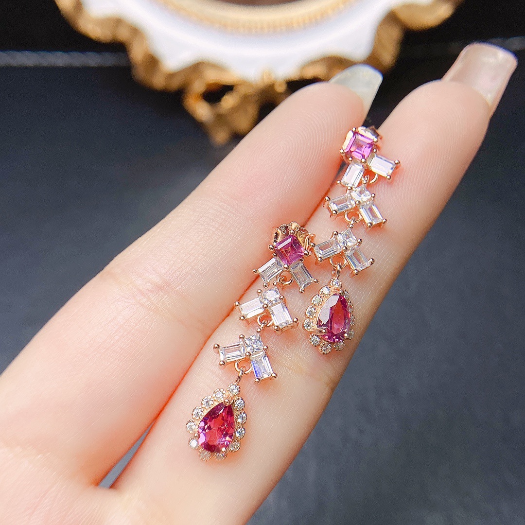 Серьги из натурального магния и алюминия с гранатом S925, инкрустированные серебром, 4*5