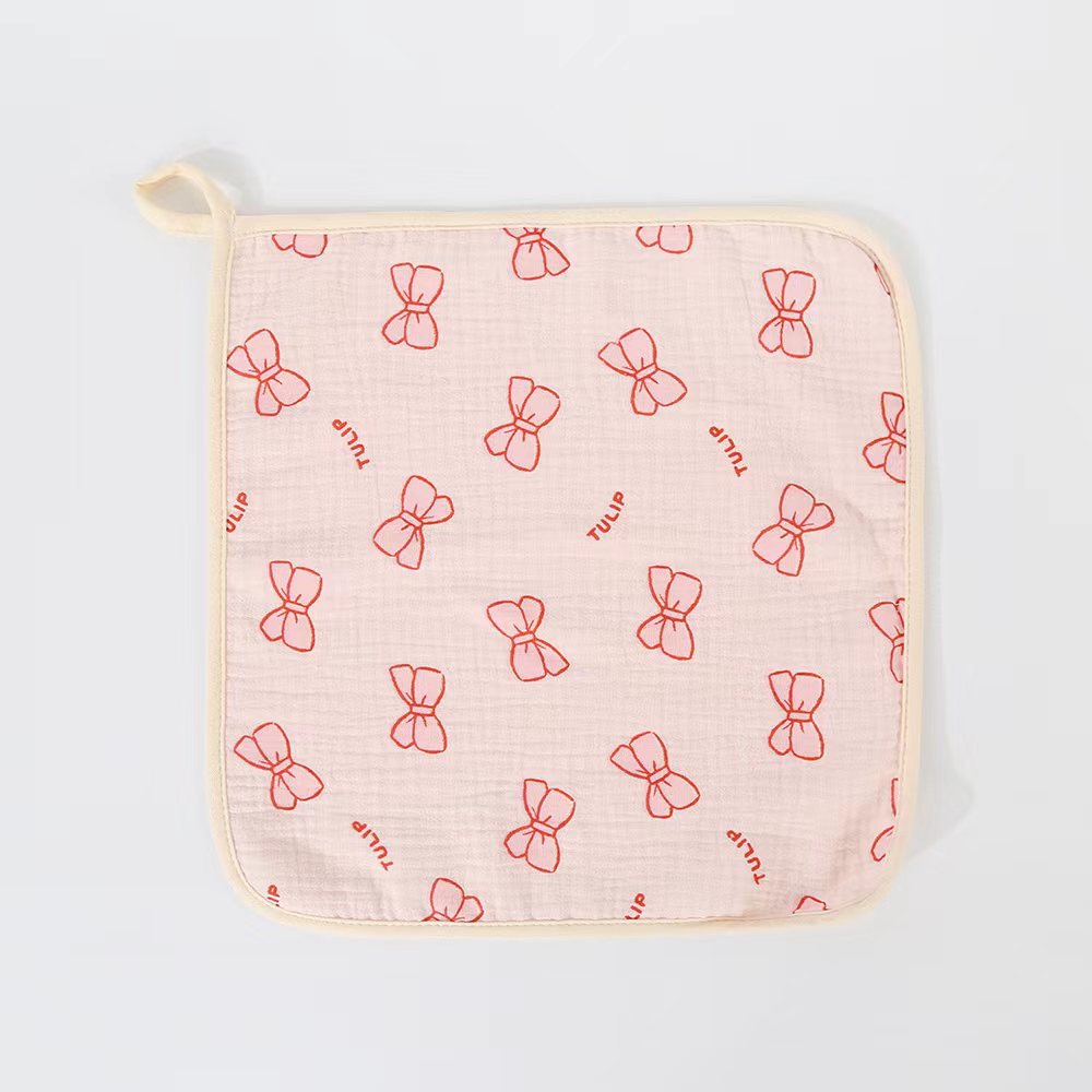 Многослойное детское полотенце из креповой шестислойной марли, 100% хлопок, с принтом, для лица, с креплением на петле, впитывающее, маленькое квадратное, оптом