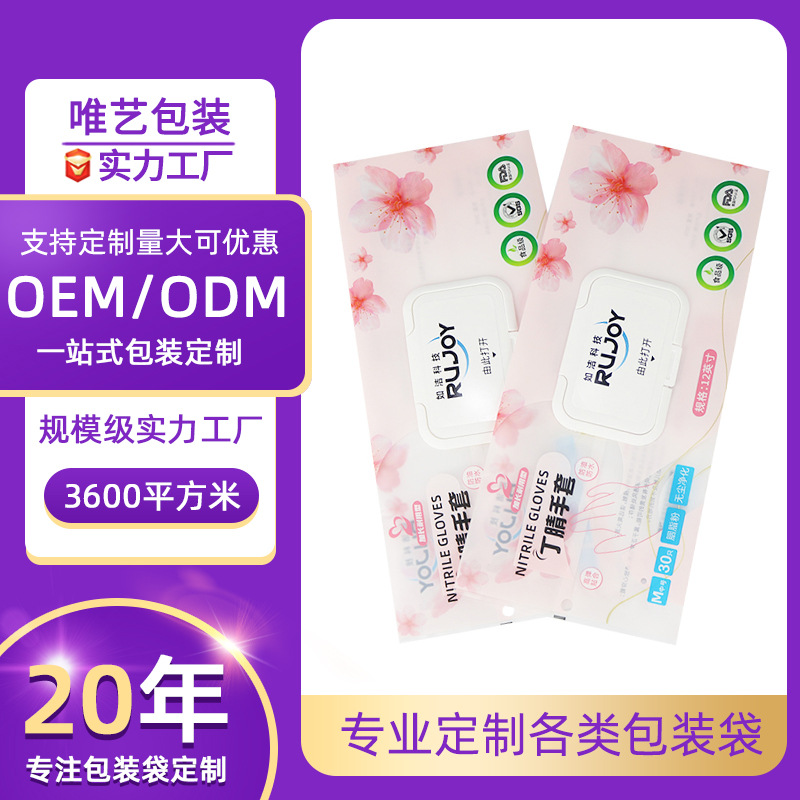 Одноразовые перчатки Флип-упаковочный пакет Влажная бумага Мешок для мытья Тип удаления Латексные нитриловые перчатки Упаковочная сумка на заказ