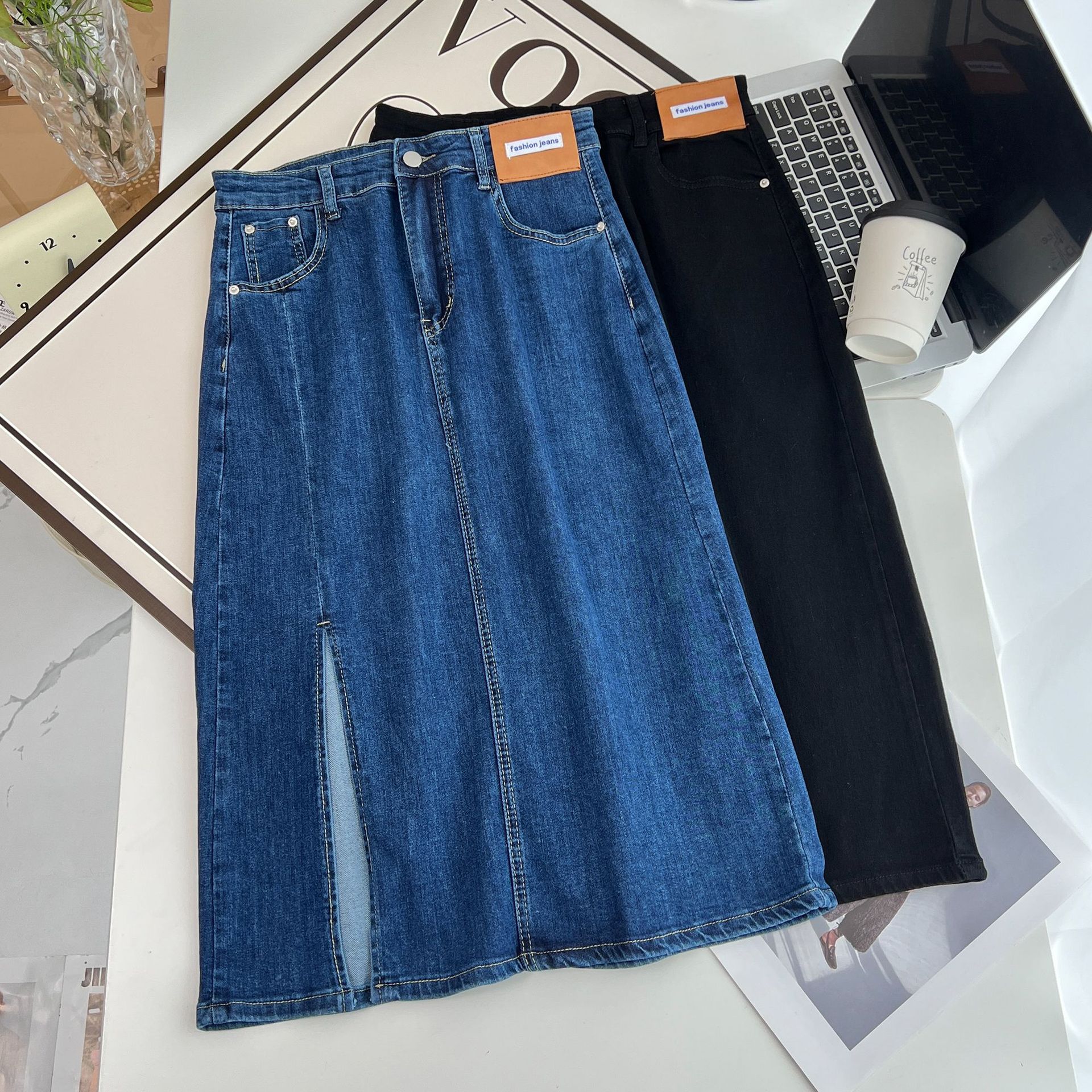 Весной и летом новая корейская версия 200 кг толстый MM тонкий средний и длинный открытый джинсовый юбка плюс размер женщины 5537