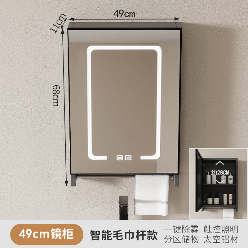 40cm50cm Космический алюминиевый интеллектуальный зеркальный шкаф с лампой для тумана Небольшой блок ванной комнаты без отверстий для макияжа зеркальный шкаф