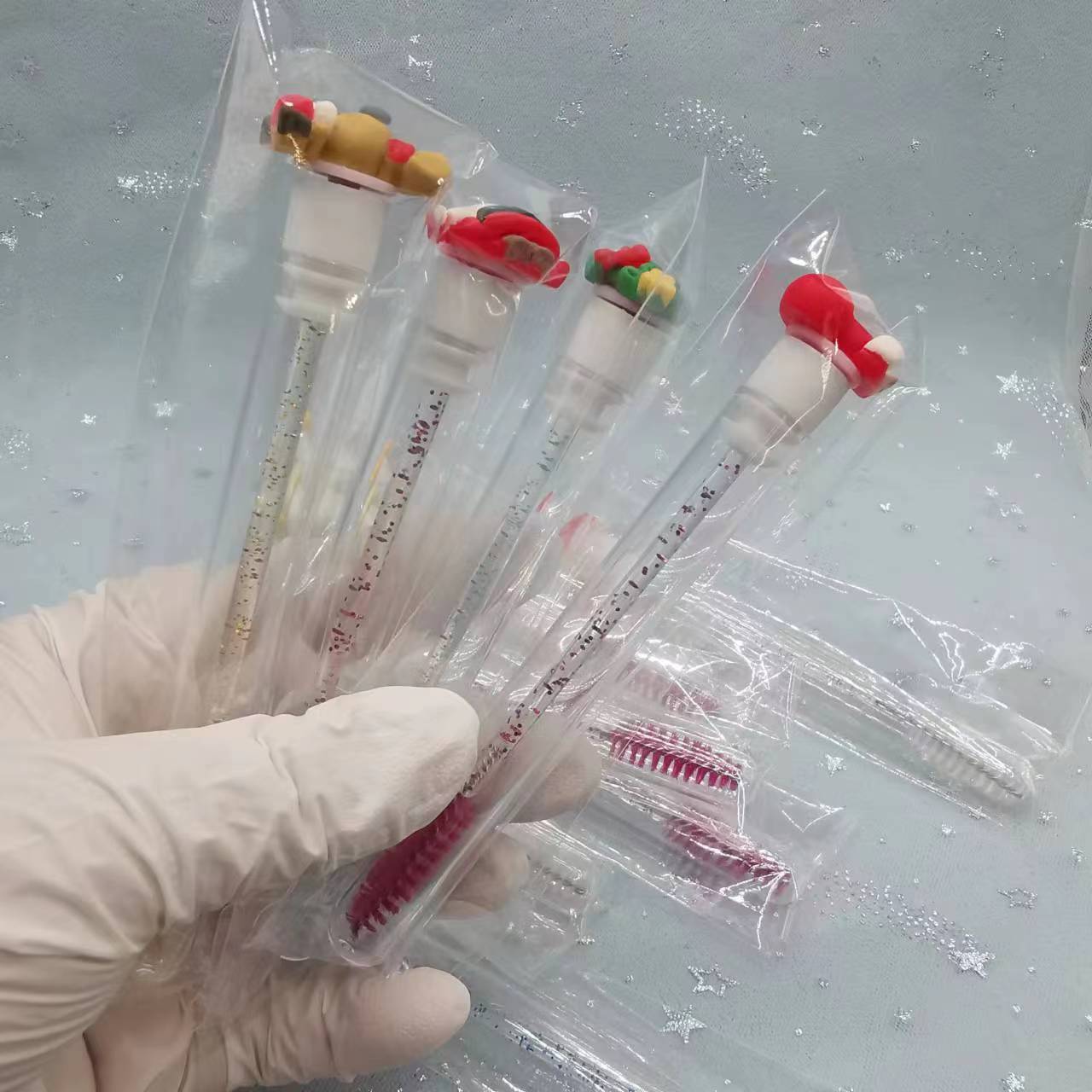 2024 Рождество Хэллоуин мультфильм пробирка для ресниц Кисть Кристалл внутренняя прозрачная труба одноразовая щетка для ресниц