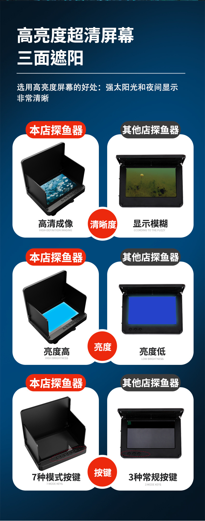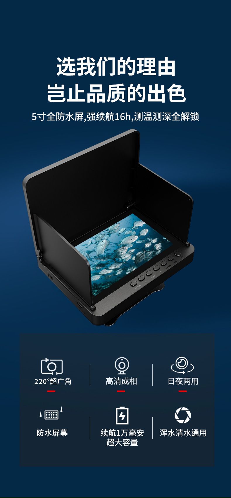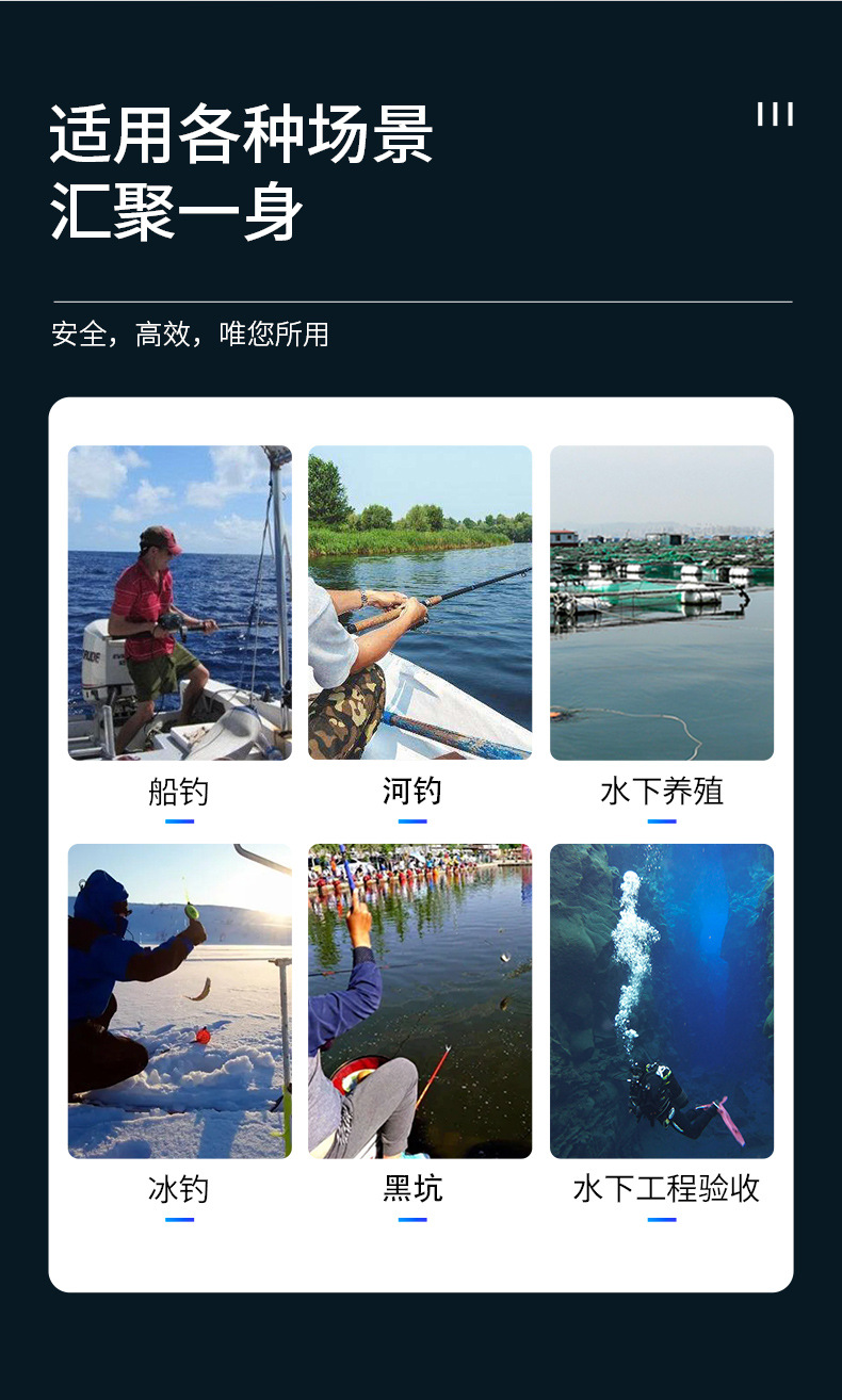5-дюймовый полностью водонепроницаемый экран IPS; 5-дюймовый полный водонепроницаемый экран IPS + Растяжимая леска 100 кг 20 м + Супер прозрачная линза; 5-дюймовый полный водонепроницаемый экран IPS + 30 метров с защитой от тяги 100 кг + Ультра прозрачная линза; 5-дюймовый полностью водонепроницаемый экран IPS + 20-метровая растягивающаяся леска 100 кг + сверхпрозрачное зондирование температуры мутной воды; 5-дюймовый водонепроницаемый экран IPS + 30-метровая растягивающаяся леска 100 кг + сверхпрозрачное зондирование температуры при метании мутной воды