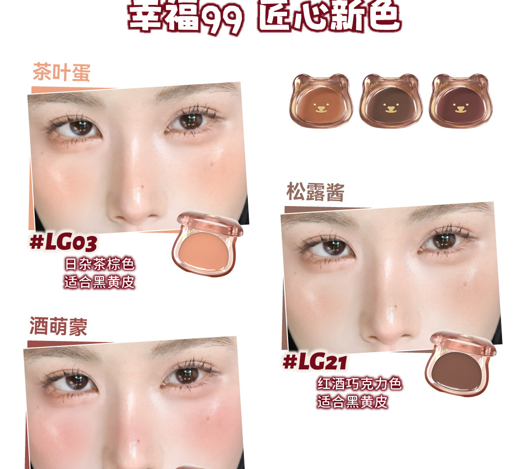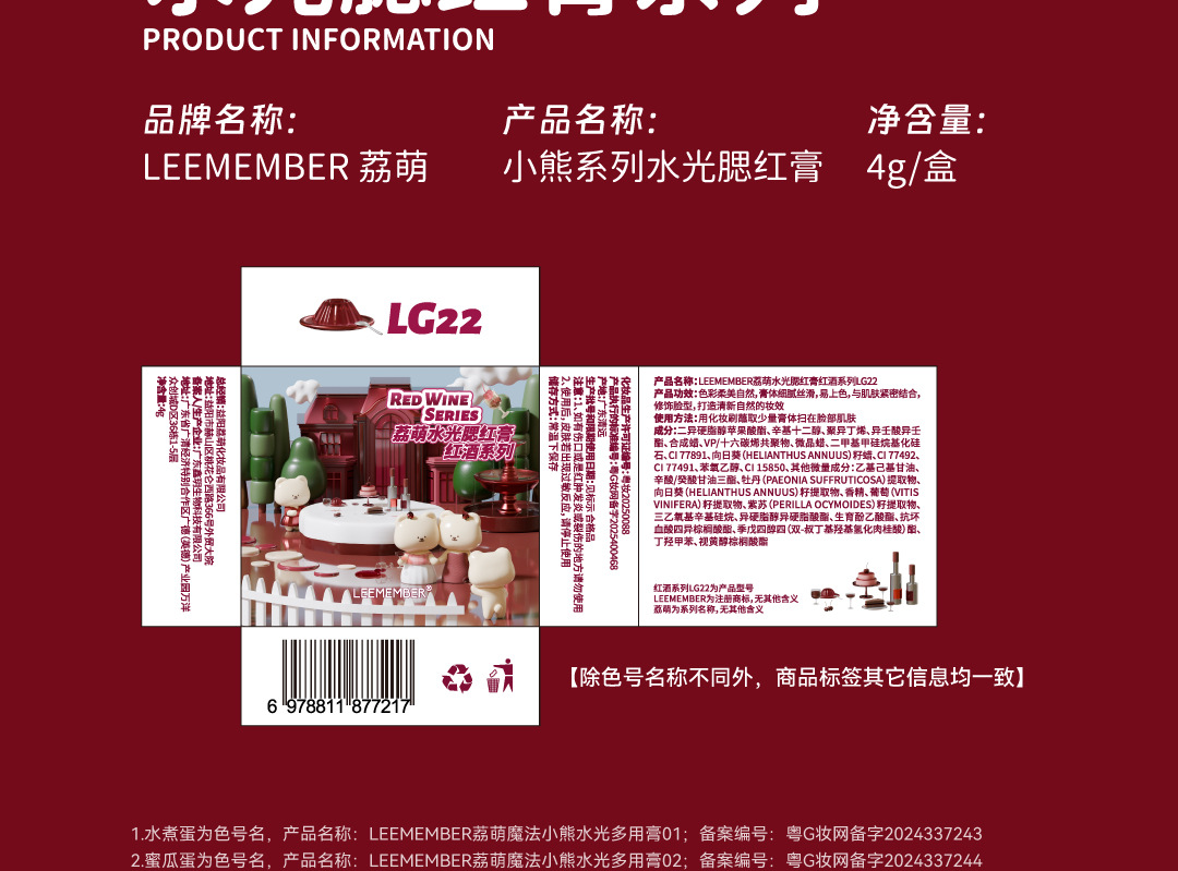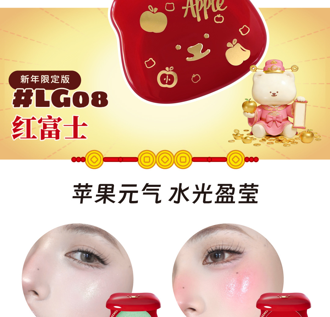LEEMEMBER/Li Meng Little Bear Baking Series: Высокоглянцевые кремовые румяна с эффектом водного блеска в корейском стиле