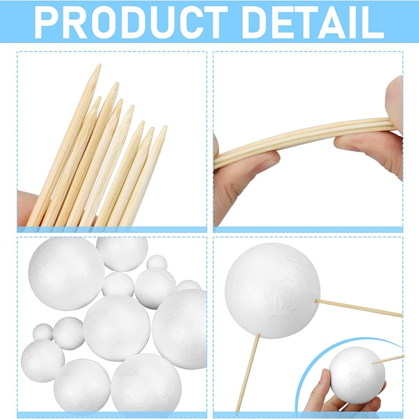 Планетарные модели включают 14 шариков из пенополистирола и 10 бамбуковых шестов длиной 24 см.