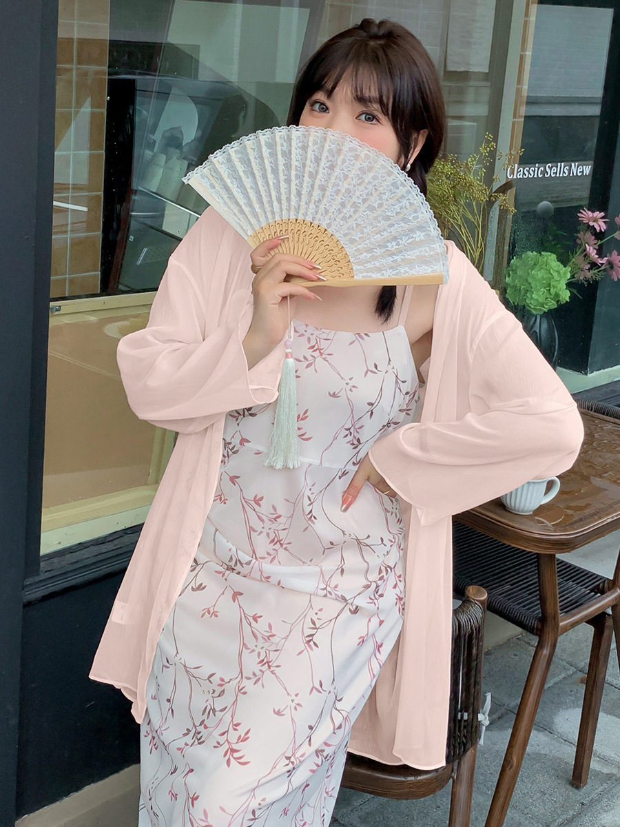 Легкая французская блузка больших размеров для женщин 200 кг пухлые девушки французский свободный платок шифон кардиган 250424
