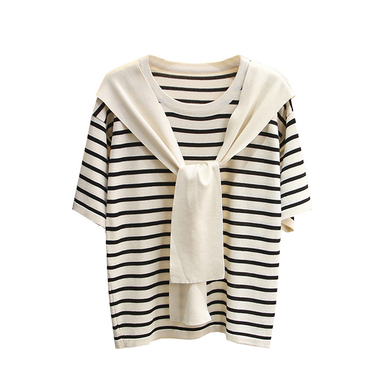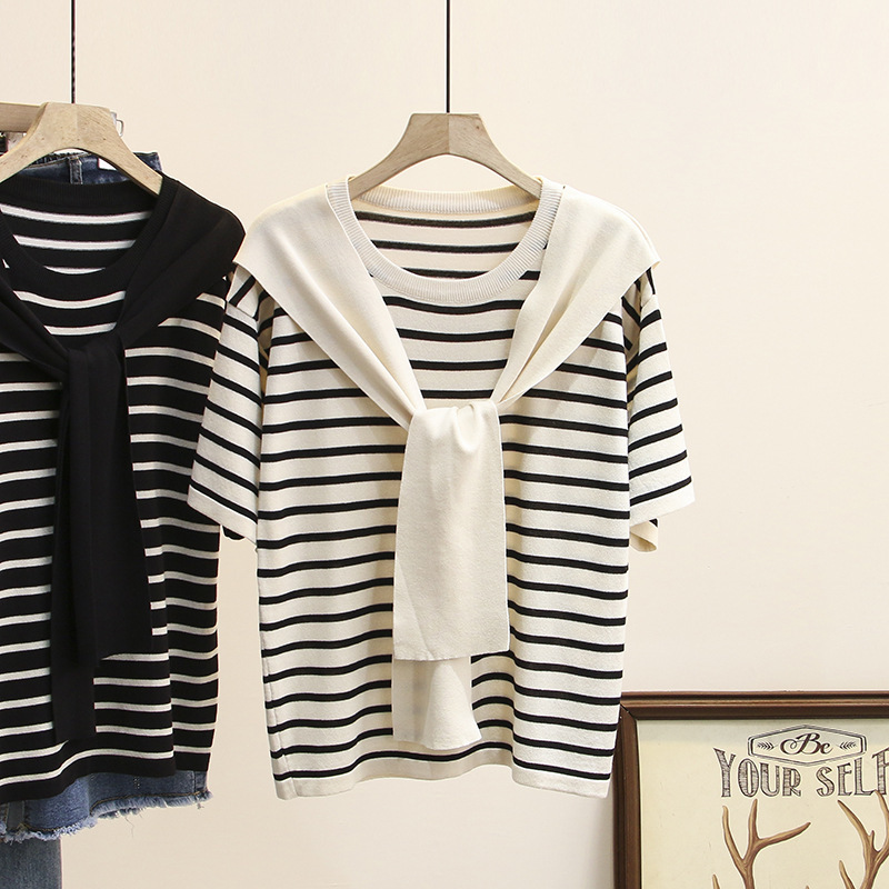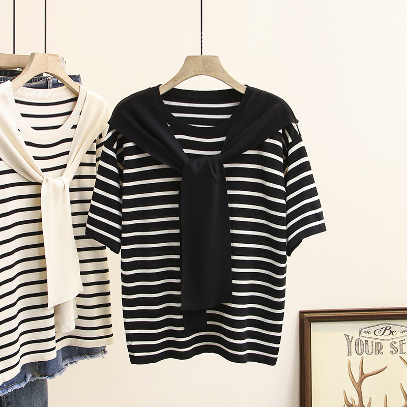 Летняя Новая Винтажная прошитая ледяная шелковая вязаная женская одежда больших размеров в Корейском стиле с короткими рукавами