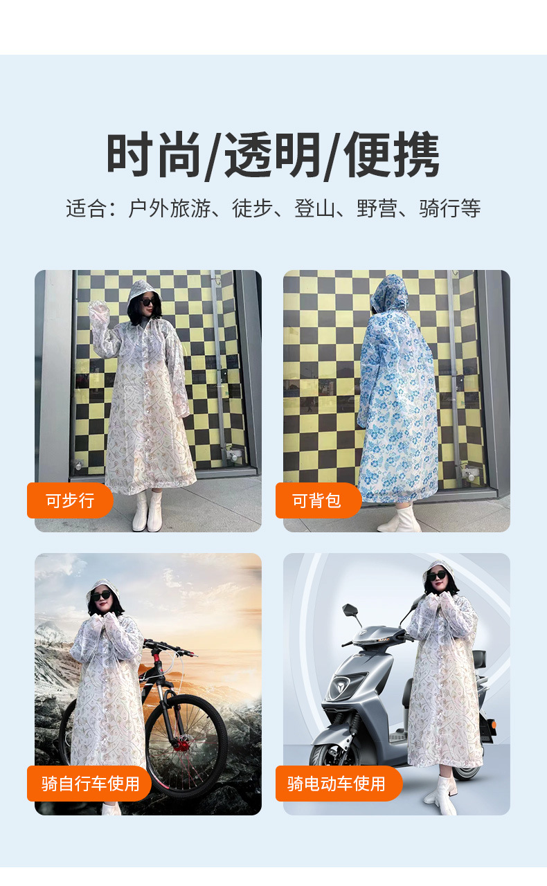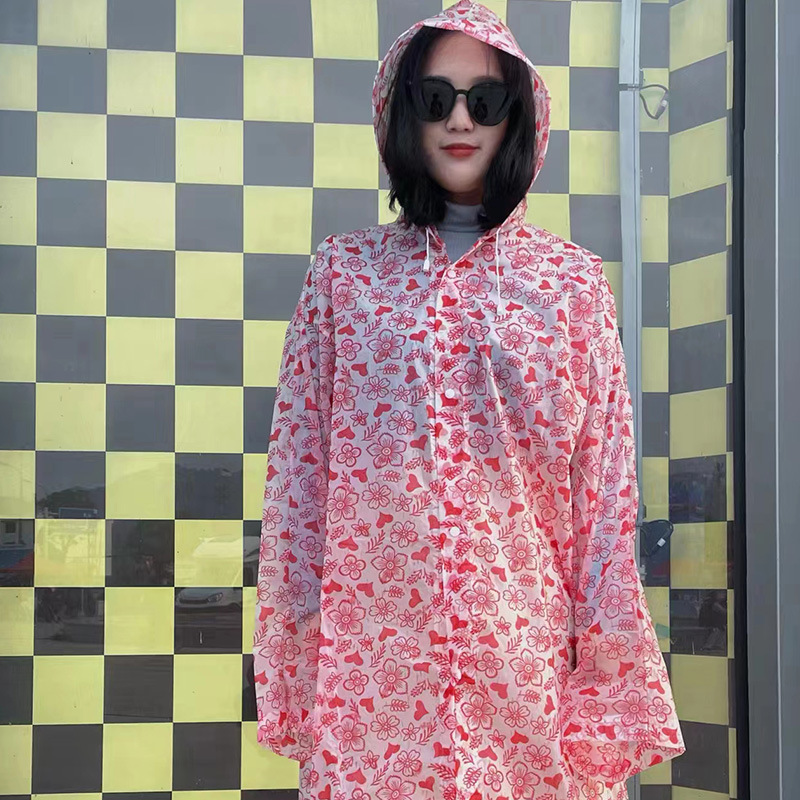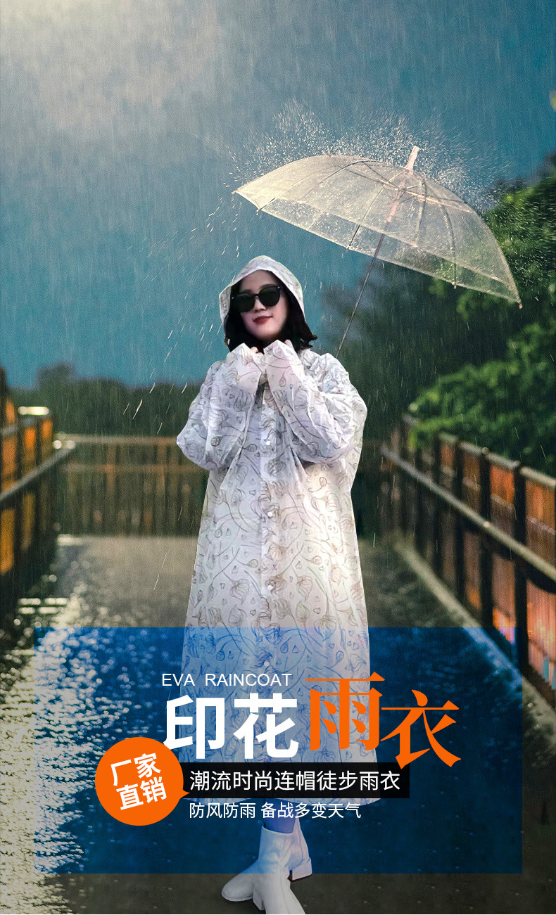 厂家批发EVA印花连体雨衣 潮流学生雨衣连帽开衫 全身防暴雨户外雨衣
