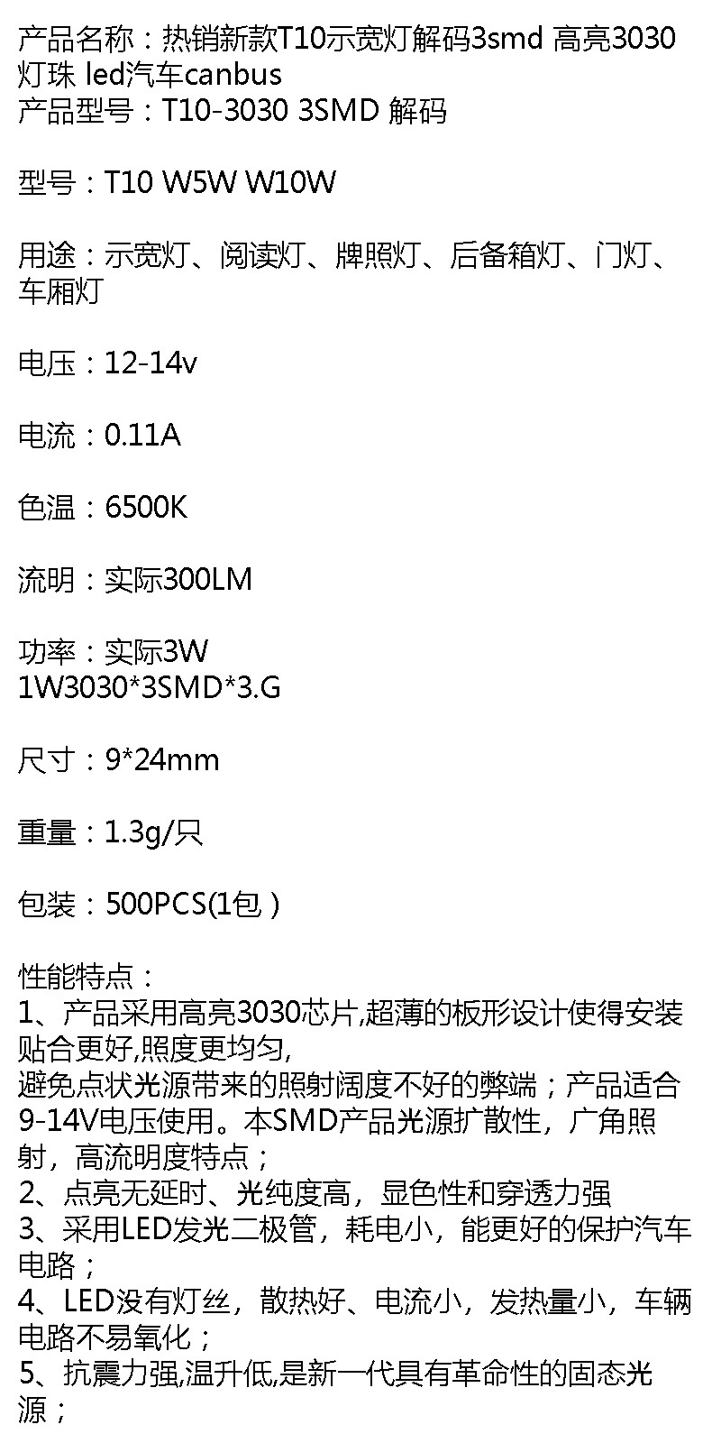 Расшифровка бесступенчатая светодиодная T10 3030 3SMD 12V Canbus Автомобильная Подсветка широкая световая лампа для чтения