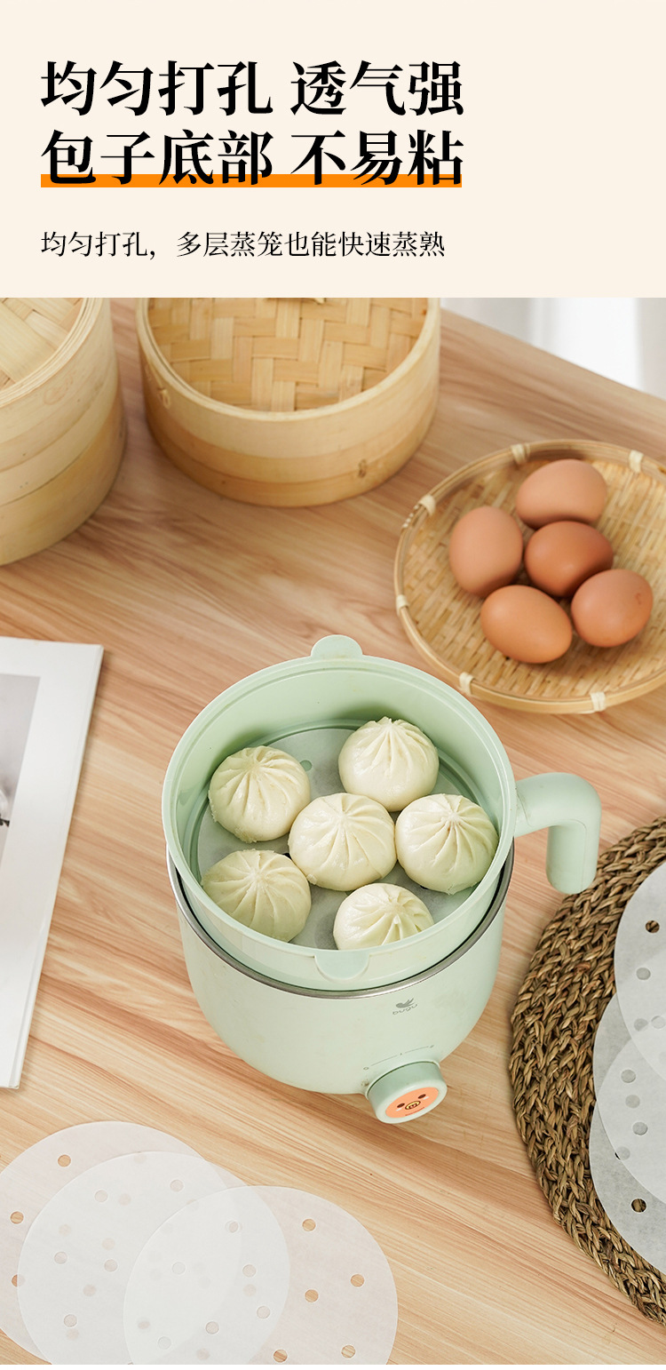 Производитель бумаги для пароварки, оптовая продажа, круглый двусторонний силиконовый бумажный блокнот, тарелка, бумажные булочки на пару, утолщенная одноразовая бумага для пароварки