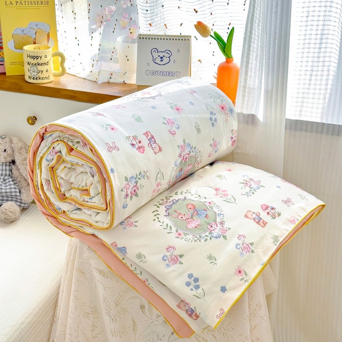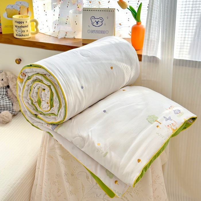 Мягкое и восковое двухслойное марлевое летнее одеяло класса А с рисунком из мультфильма, двуспальное летнее одеяло, летнее приятное для кожи летнее одеяло, можно стирать в машине, одеяло с кондиционером, подарочное одеяло