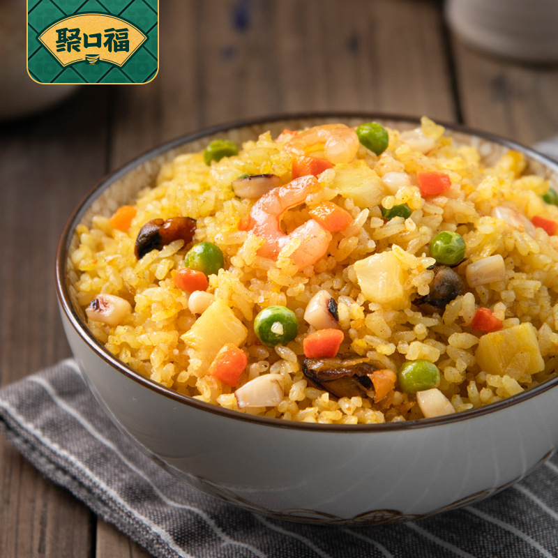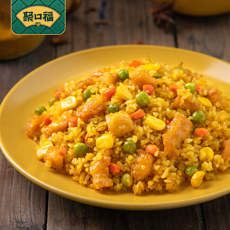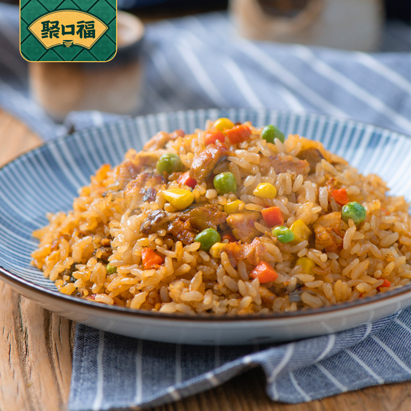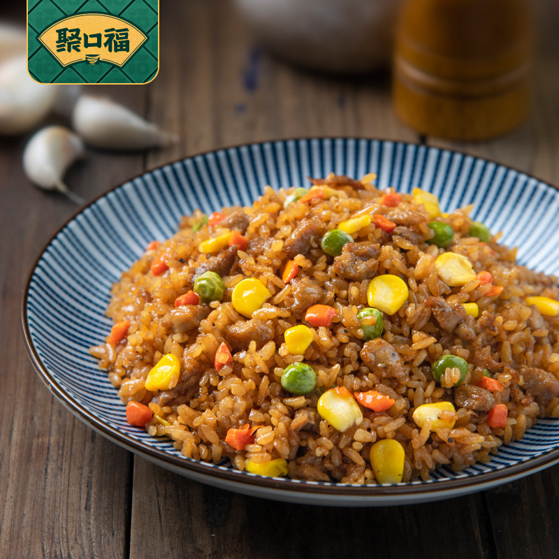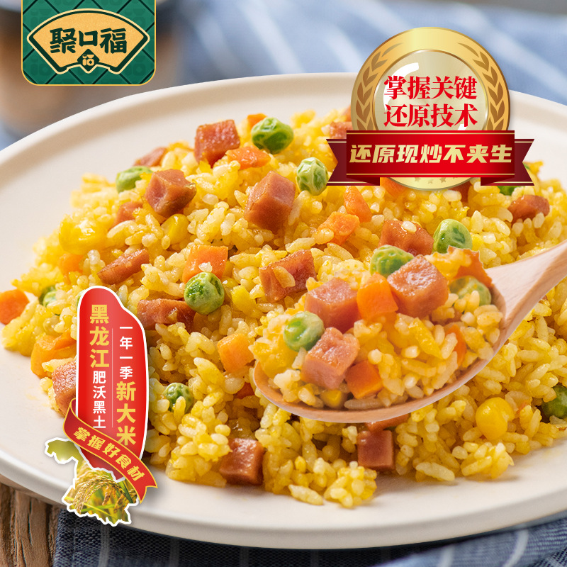 Жареный рис Jukoufu из Янчжоу с говядиной, курицей и морепродуктами, быстрорастворимый рис с яйцом, разогреваемый в микроволновке, полуфабрикат быстрого приготовления.