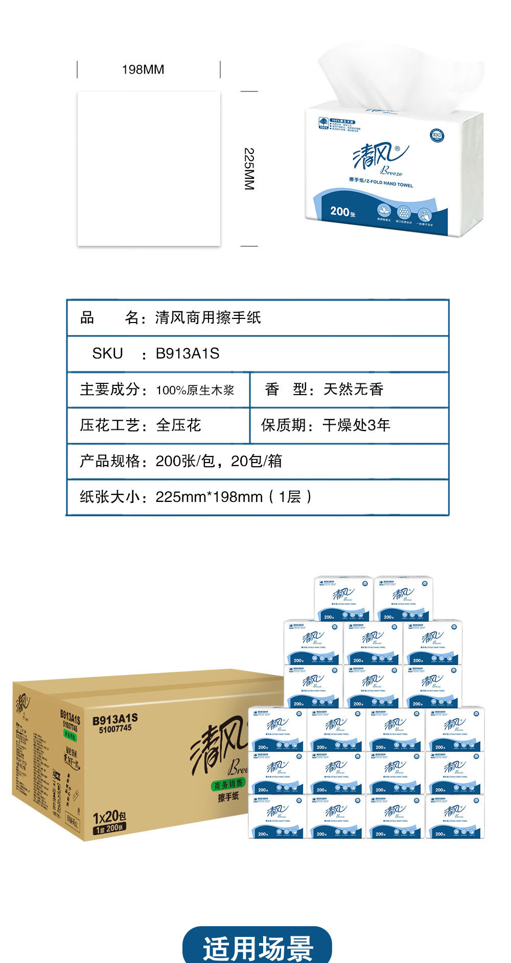 Большая упаковка полотенец Qingfeng, 200 листов, одиночная упаковка, бумажное полотенце, коммерческое, гостиничное, офисное, бытовое, туалетная бумага B913A1S