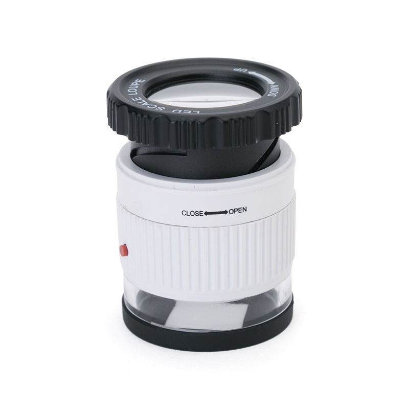 Круглое тканевое инспекционное зеркало с LED-подсветкой для проверки валюты, 30-кратное увеличение с шкалой, портативное тканевое инспекционное зеркало, цилиндрическая лупа TH-9006B